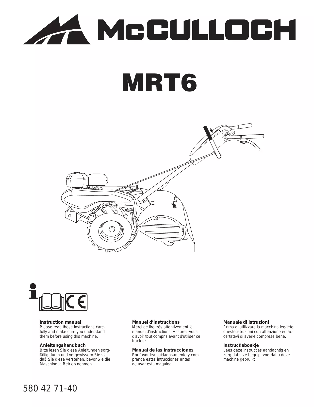Retrouvez gratuitement la notice de l'appareil ROTOFRAISE MRT6 MC CULLOCH au format PDF.