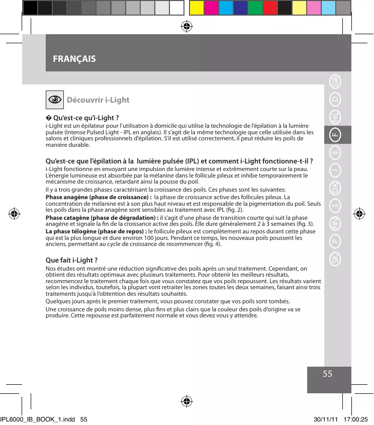 Avant d'utiliser i-Light: Assurez-vous de dire la totalité des avertissements et mesures de sécurité Avant de commencer, vérifie si i-Light est ajusté à votre type de peau.