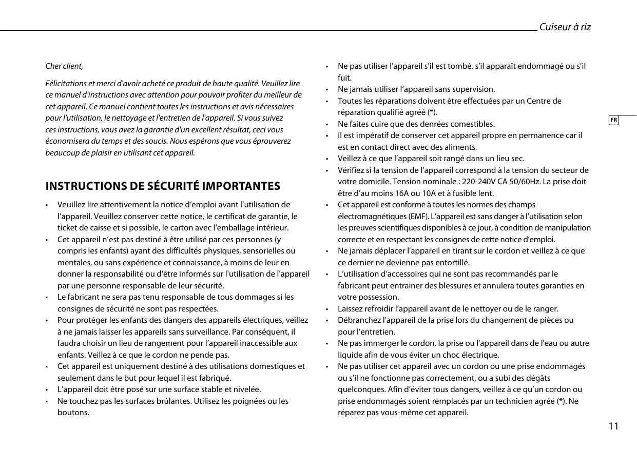 - Lors du branchement du cuiseur, veillez toujours à ce que la cuve interieure contienne un liquide, ou soyez prét(e) à y ajouter immEDIATMENT de l'huile, du beurre ou de la margarine.