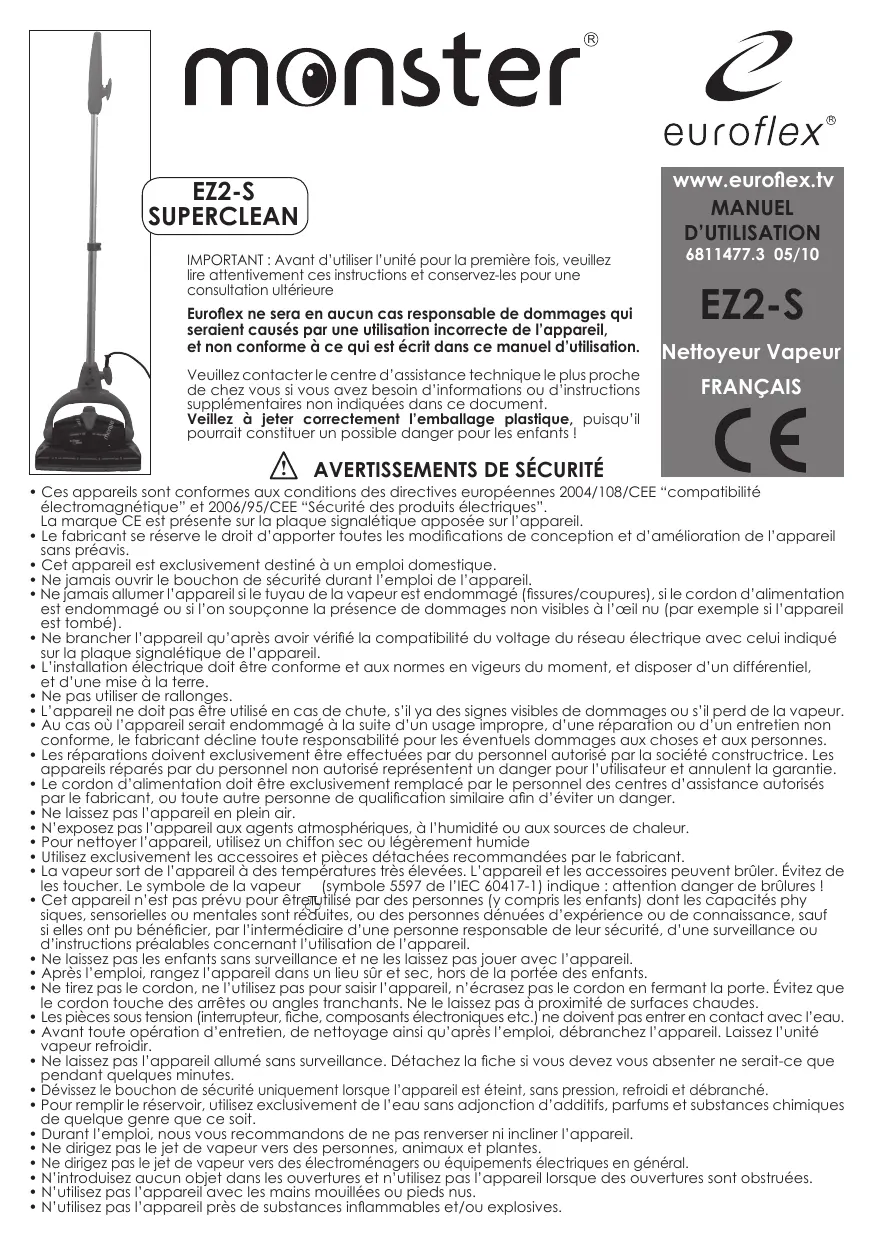 MODE D'EMPLOI MONSTER EZ2-S SUPERCLEAN EUROFLEX