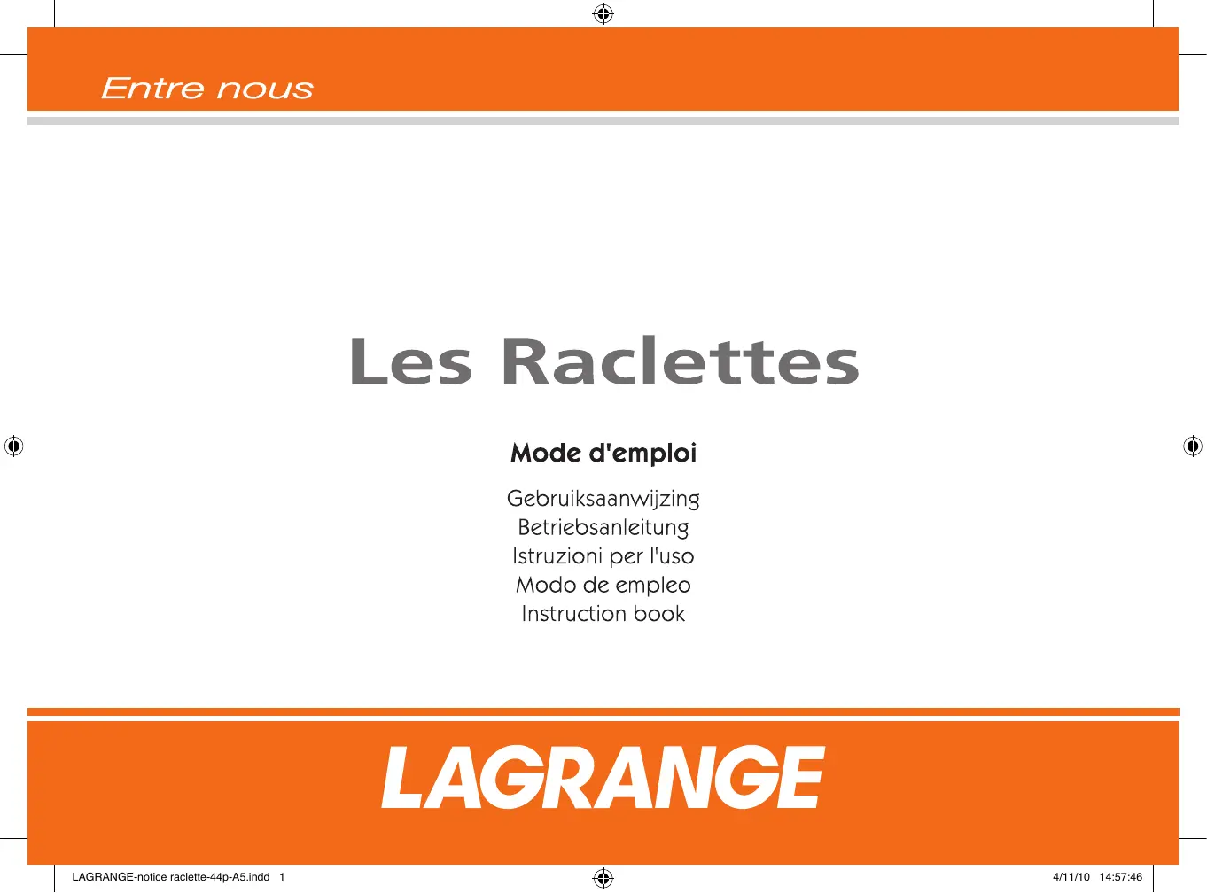 MODE D'EMPLOI 129201 RACLETTE 8 COQUELICOT LAGRANGE