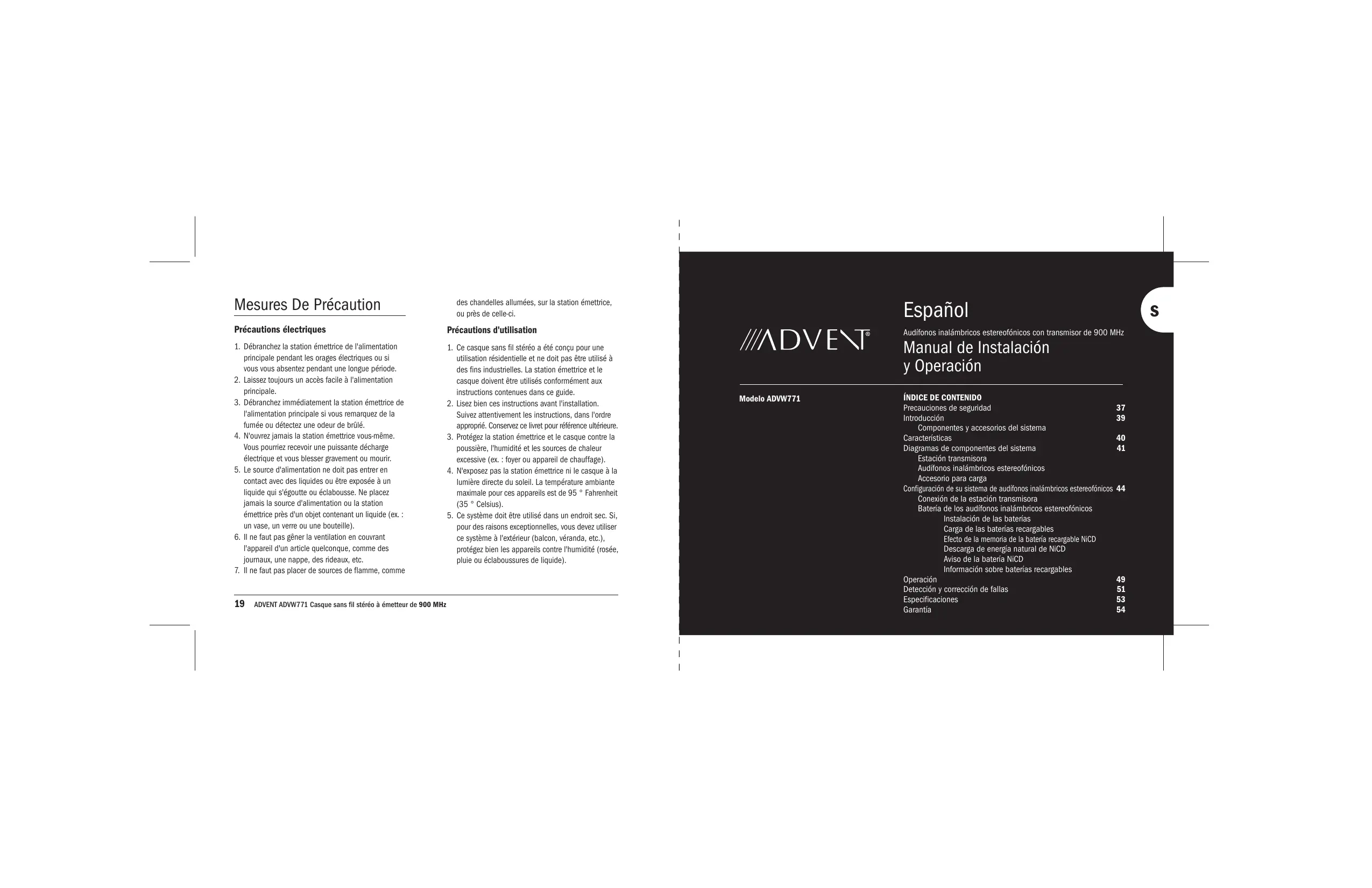 Retrouvez gratuitement la notice de l'appareil ADVW771 ADVENT au format PDF.