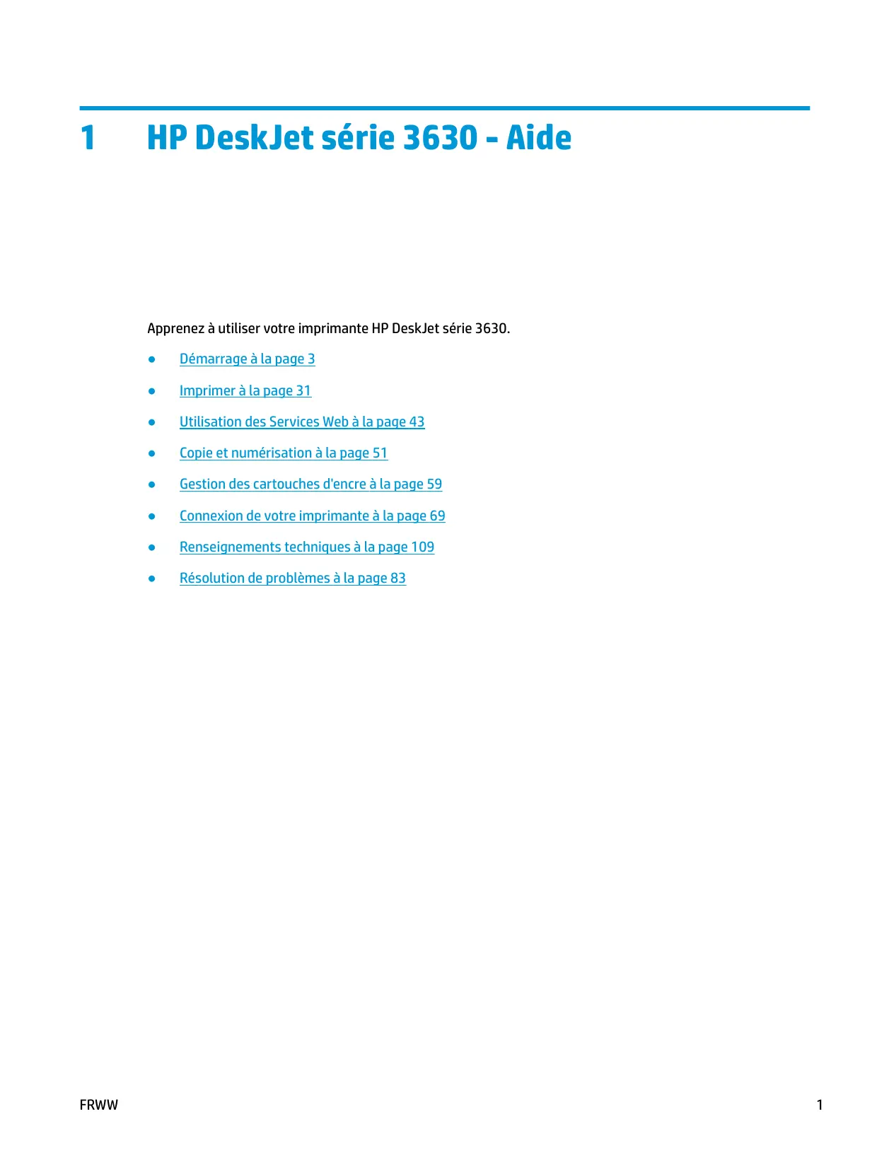 HP DeskJet série 3630 - Aide Apprenez à utiliser votre imprimante HP DeskJet série 3630. FRWW