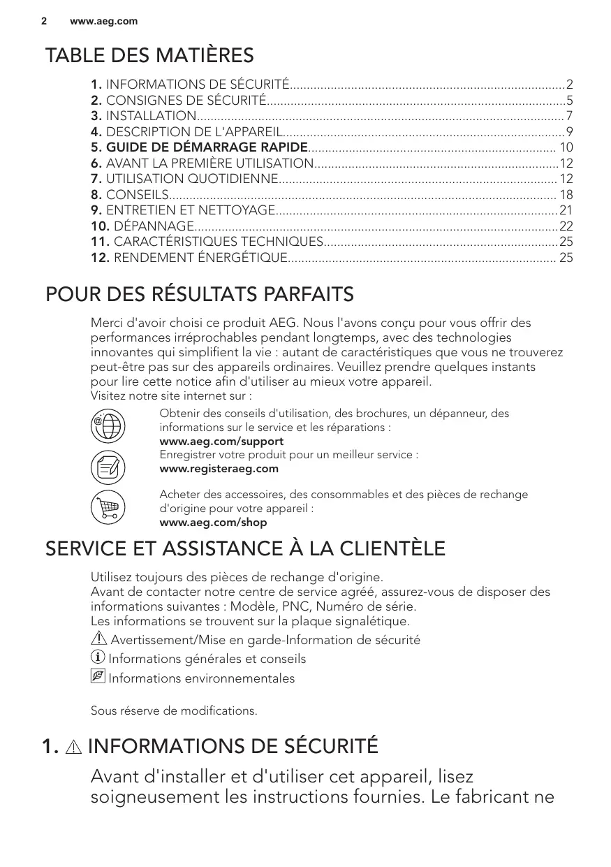 Merci d'avoir choisi ce produit AEG. Nous l'avons conçu pour vous offrir des performances irréprochables pendant longtemps, avec des technologies innovantes qui simplifier la vie : autant de caractéristiques que vous ne trouverez peut-être pas sur des appareils ordinaires. Veuillez prendre quelques instantes pour dire cette notice afin d'utiliser au moins votre apparéil.