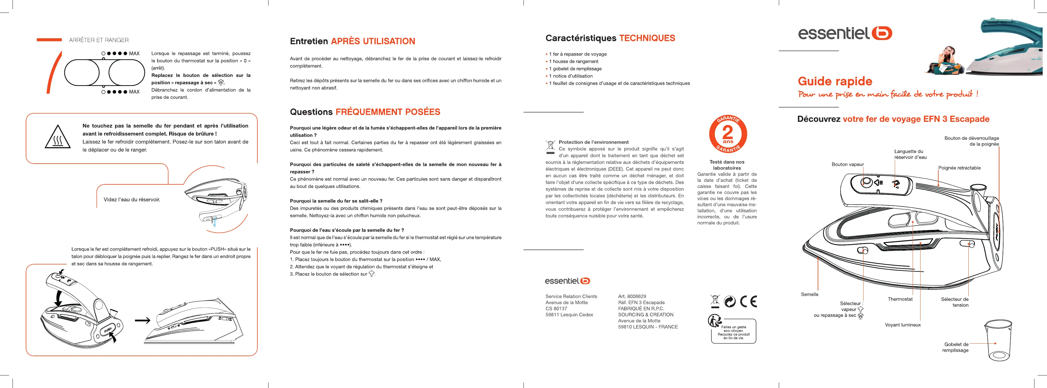 EFN3 ESCAPADE - Fer à repasser ESSENTIELB - Notice d'utilisation et mode d'emploi gratuit