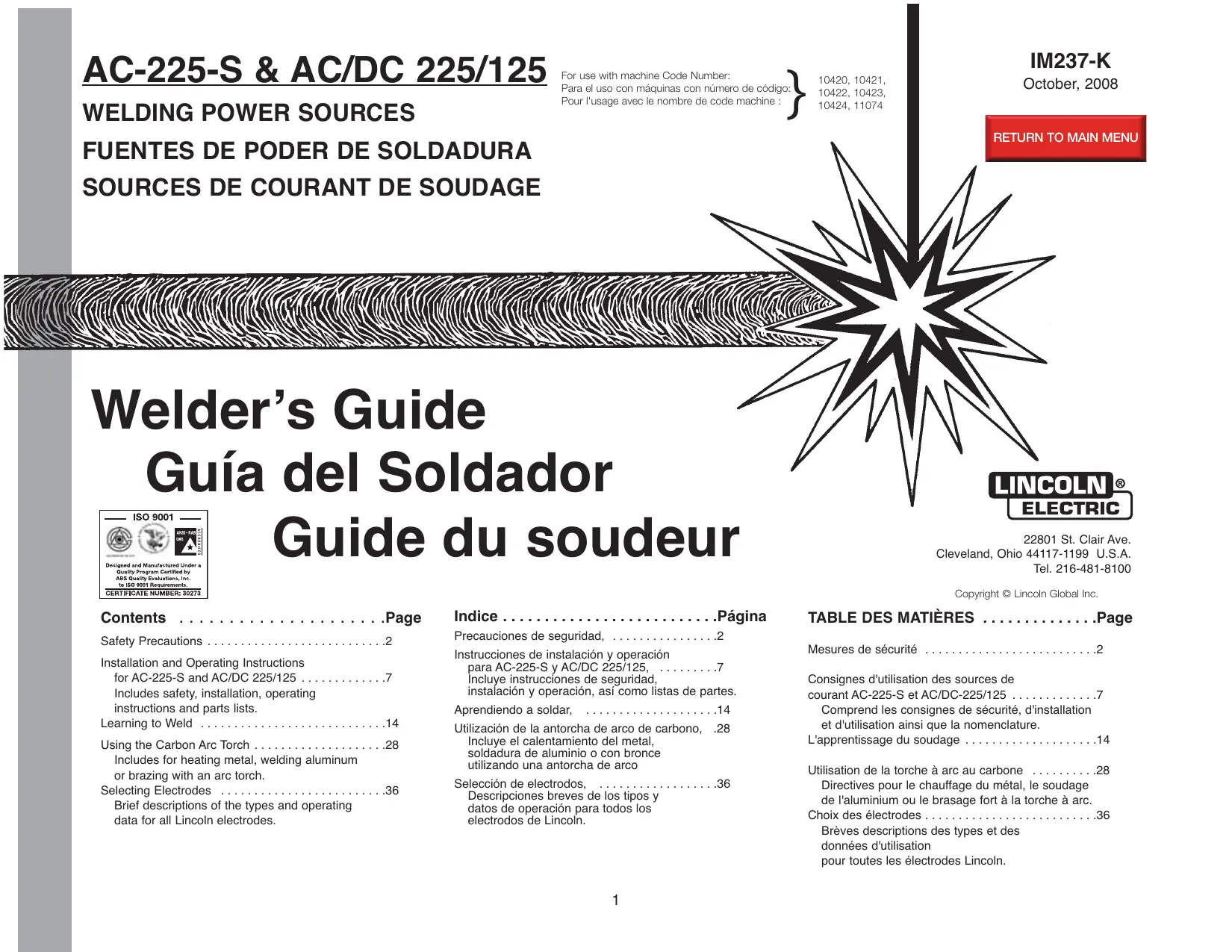 AC/DC 225/125 - Soudage LINCOLN ELECTRIC - Notice d'utilisation et mode d'emploi gratuit