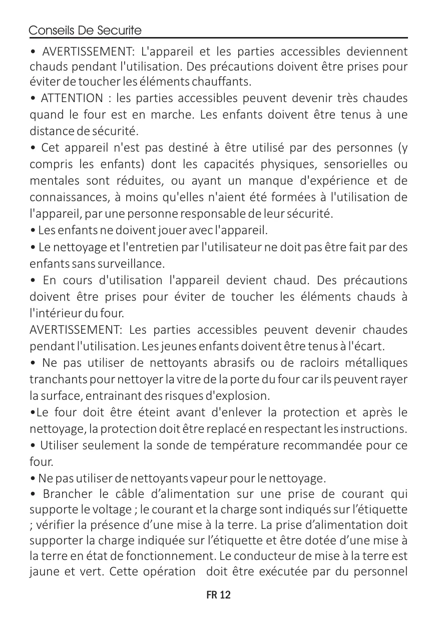 - ATTENTION : les parties accessibles peuvent devenir très chaudes quand le four est en marche. Les enfants doivent être tenus à une distance de sécurité.