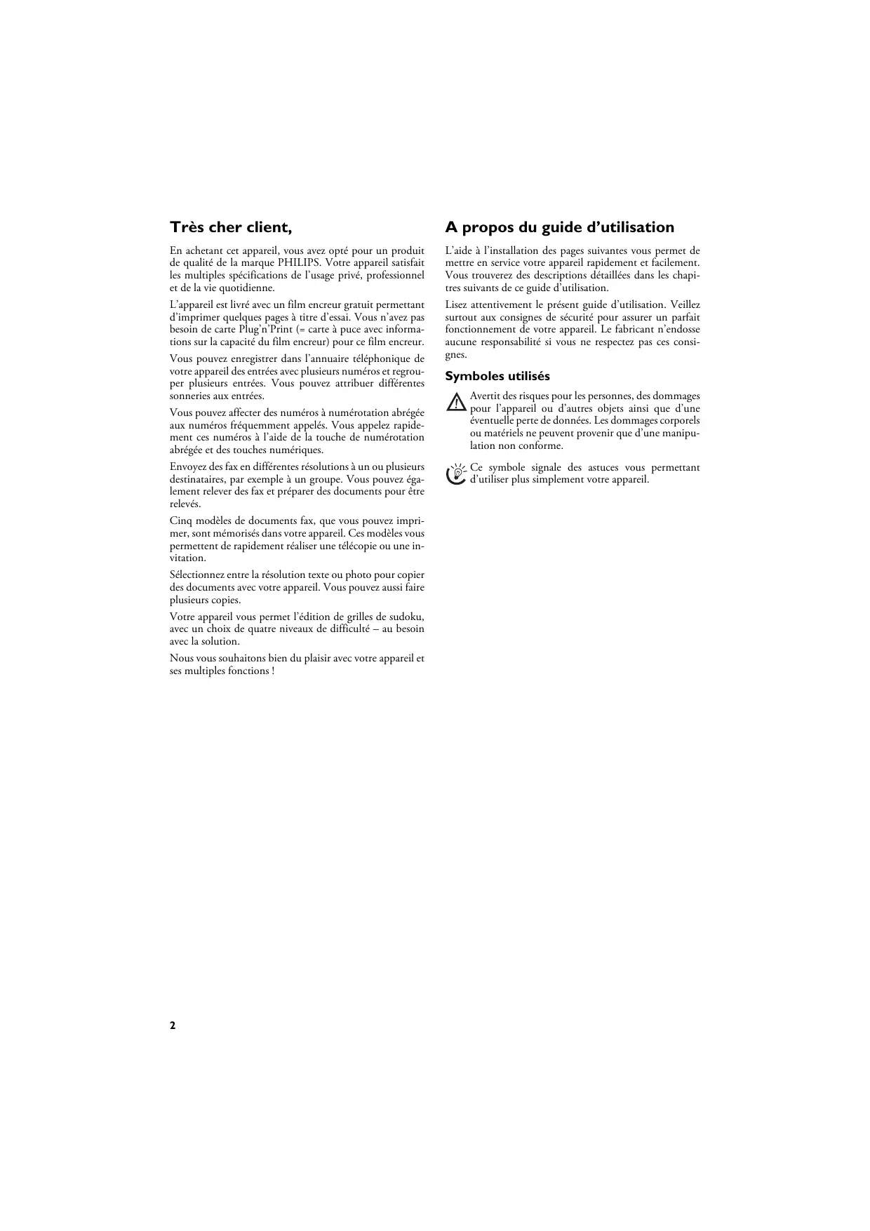 MAGIC 5 PRIMO - Fax PHILIPS - Notice d'utilisation et mode d'emploi gratuit