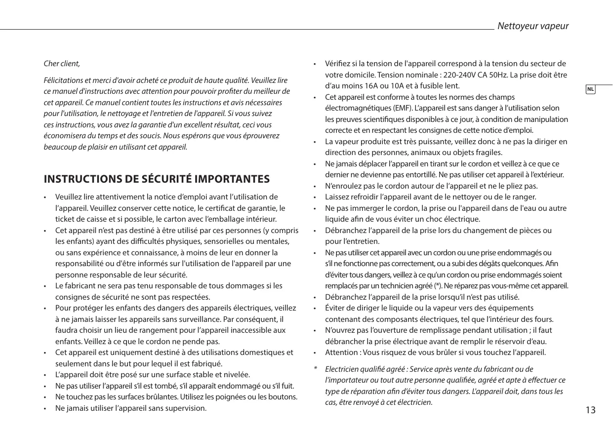 - Veuillez dire attentivement le manuel d'instructions avant d'utiliser l'appareil. Le nettoyeur vapeur est destiné à un usage uniquement domestique.
