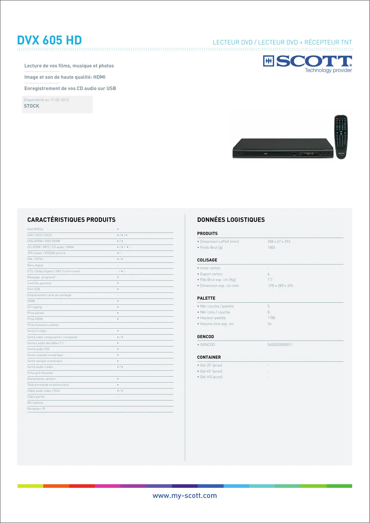 DVX 605 HD - Lecteur dvd SCOTT - Notice d'utilisation et mode d'emploi gratuit