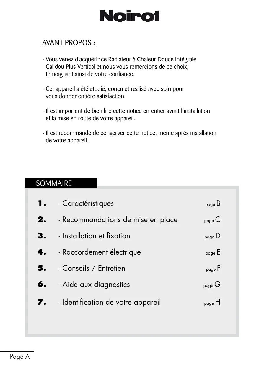 Calidou Plus Vertical et nous vous remercions de ce choix, témoignant ainsi de votre confiance. - Cet appareil a été étudié, conçu et réalisé avec soin pour vous donner entière satisfaction. - Il est important de bien lire cette notice en entier avant l’installation et la mise en route de votre appareil. - Il est recommandé de conserver cette notice, même après installation de votre appareil.