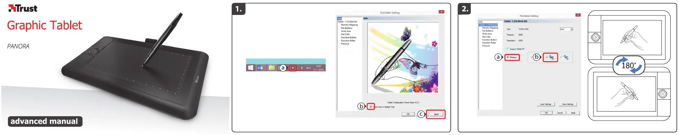 Téléchargez la notice de votre Tablette graphique au format PDF gratuitement ! Retrouvez votre notice PANORA - TRUST et reprennez votre appareil électronique en main. Sur cette page sont publiés tous les documents nécessaires à l'utilisation de votre appareil PANORA de la marque TRUST.