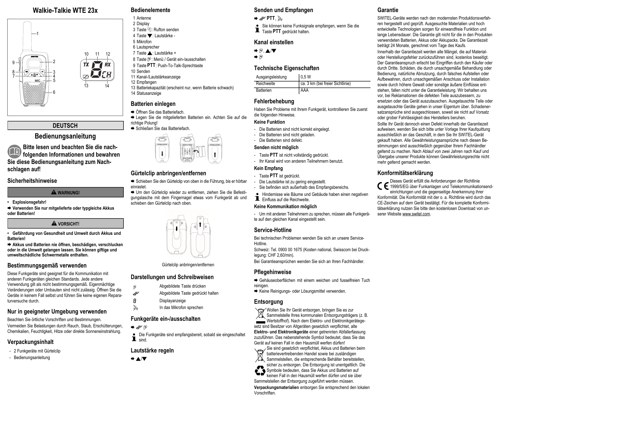 SWITEL sont contrôlés et fabriqués suivant les meilleurs procédés Des matériaux sélectionnés et des technologies de pointe leur garantissant un fonctionnement irréprochable et une longue durée de vie. La garantie ne s'applique pas aux piles et piles re-chargeables utilisées dans les produits. La durée de la garantie est de 24 mois à partir de la date d'achat.