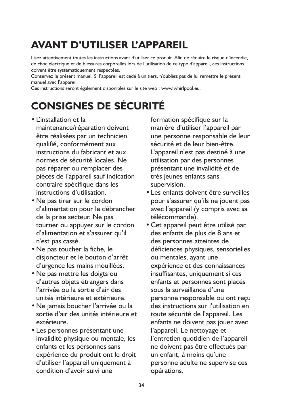 PACW9HP - Climatiseur portable WHIRLPOOL - Notice d'utilisation et mode d'emploi gratuit