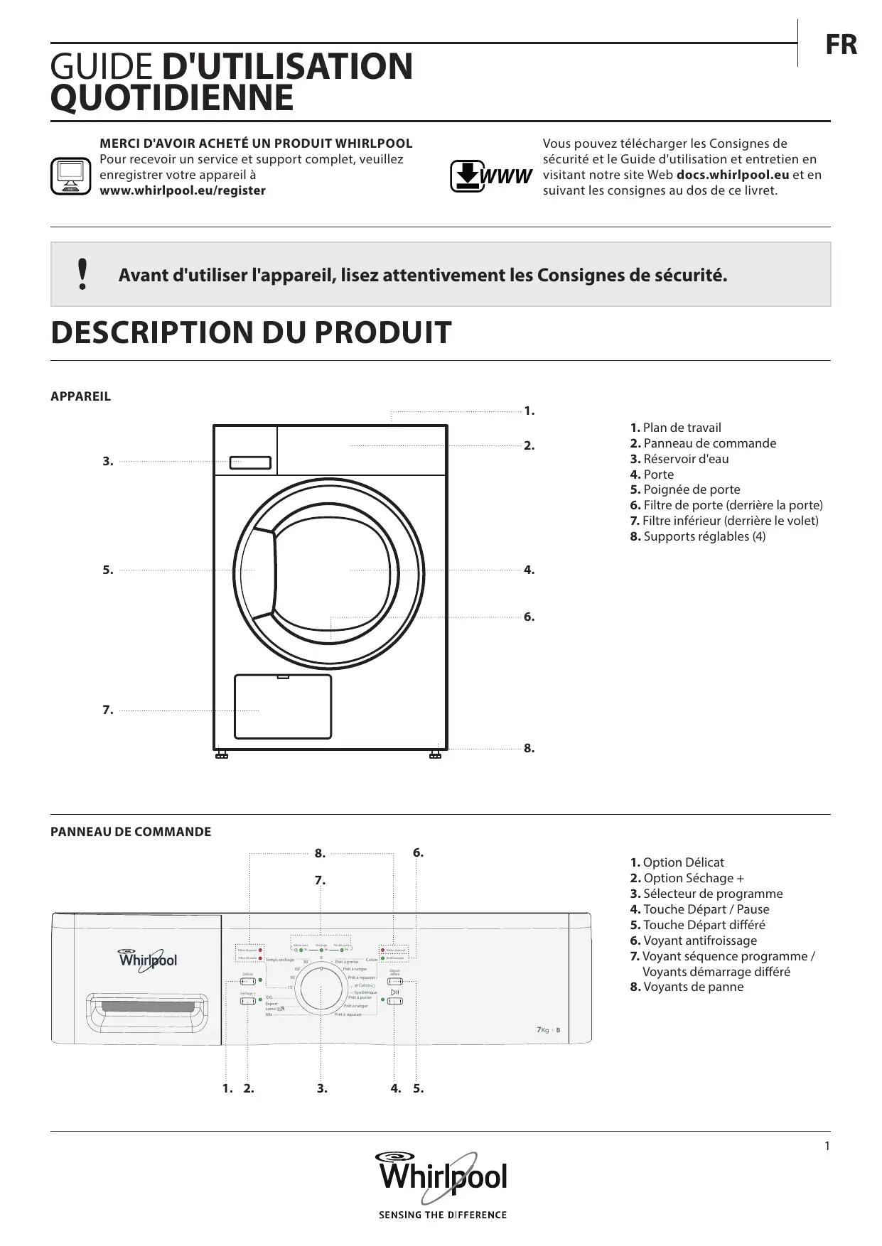 Pour recevoir un service et support complet, veuillez enregistrer votre appareil à www.whirlpool.eu/register WWW Vous pouvez télécharger les Consignes de sécurité et le Guide d'utilisation et entretien en visitant notre site Web docs.whirlpool.eu et en suivant les consignes au dos de ce livret. Avant d'utiliser l'appareil, lisez attentivement les Consignes de sécurité.