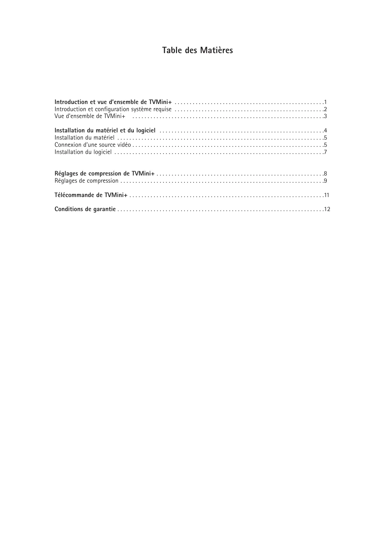 Ce guide de l'utilisateur vous indiquera comment installer le matériel ainsi que son logiciel. Les différentes options du logiciel et possibilités de la solution TVMini+ seront présentées en détail.