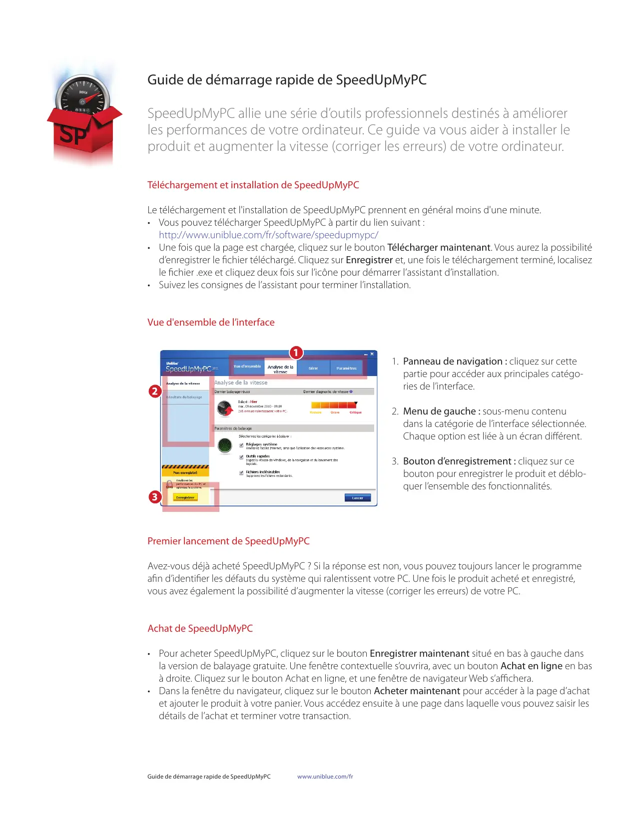 - Le site Web d’assistance comprend également une section FAQ utile. Guide de démarrage rapide de SpeedUpMyPC www.uniblue.com/fr
