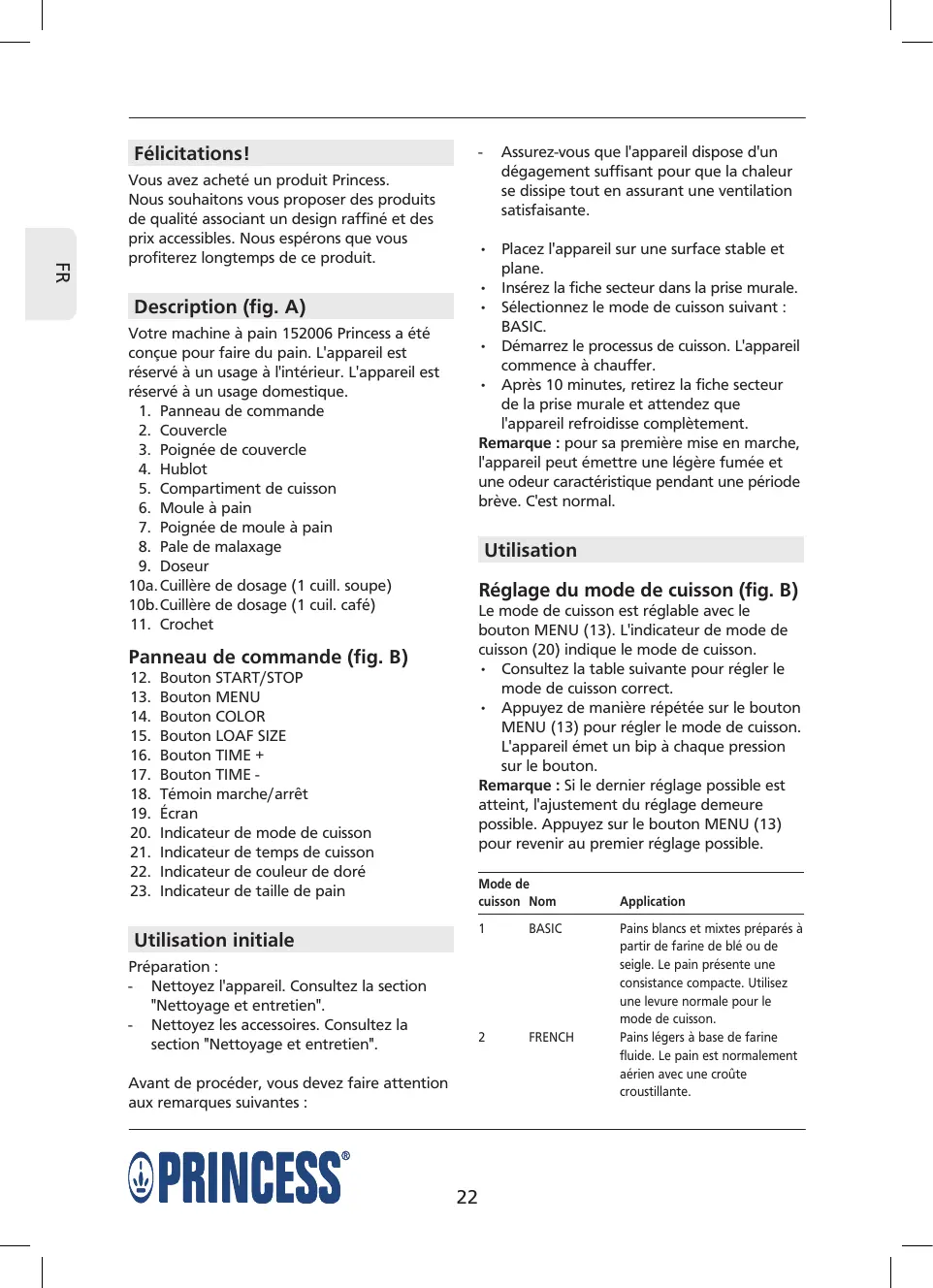 152006 - 152007 - PRINCESS - Notice d'utilisation et mode d'emploi gratuit