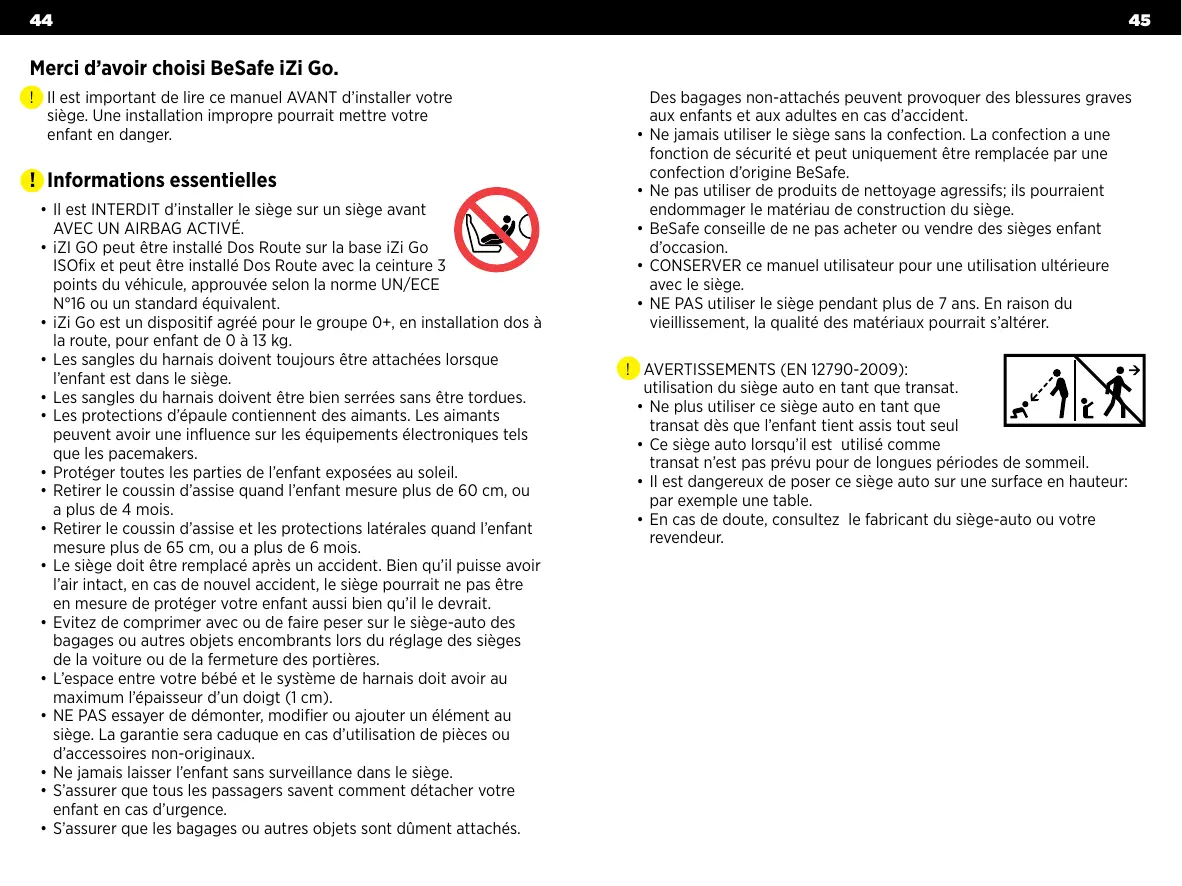 Merci d’avoir choisi BeSafe iZi Go. !! Il est important de lire ce manuel AVANT d’installer votre siège. Une installation impropre pourrait mettre votre enfant en danger.