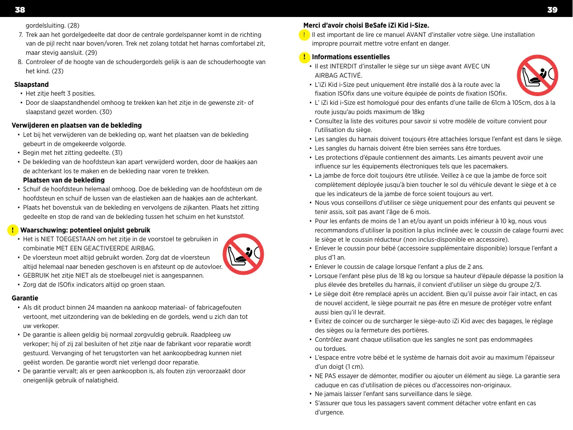 39 Merci d’avoir choisi BeSafe iZi Kid i-Size. !! Il est important de lire ce manuel AVANT d’installer votre siège. Une installation impropre pourrait mettre votre enfant en danger.