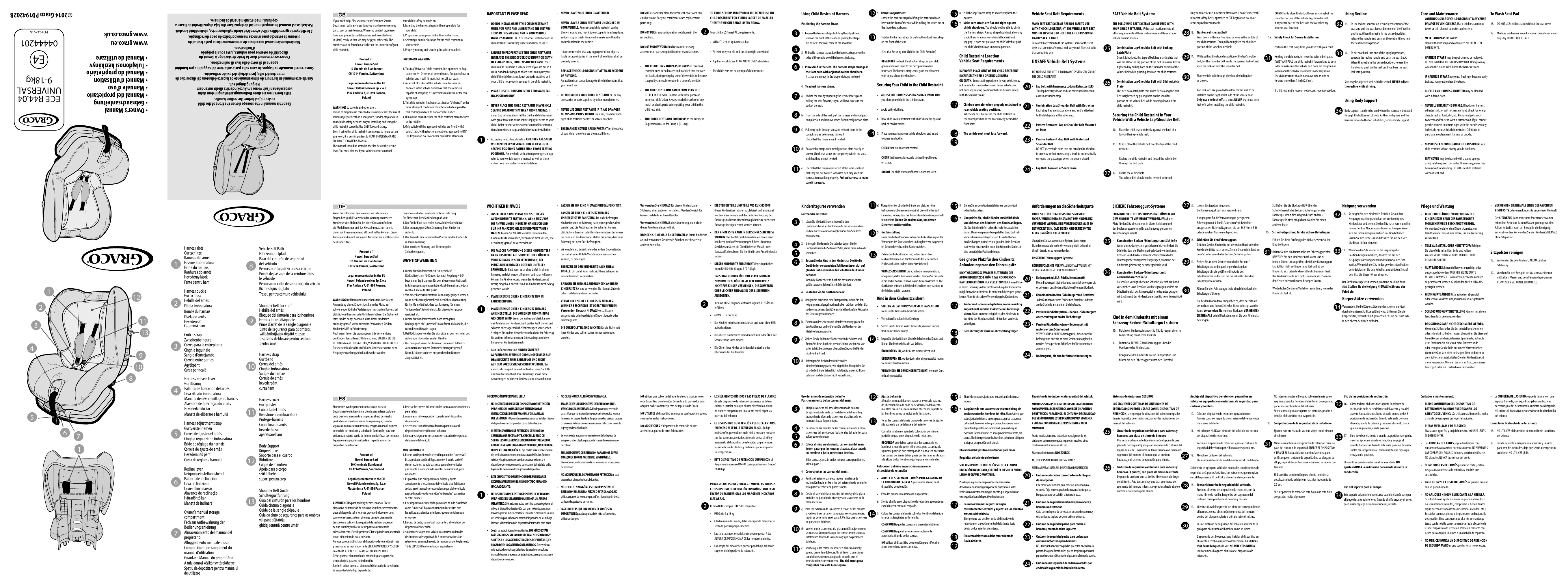 1. Ce dispositif de retenue pour enfants est "universel". Il est homologué suivant le Règlement n° 44, série 04 d'amendements, pour une utilisation dans des véhicules. Il convient à la plupart, mais non à tous, les sièges de véhicule. 2. Pour savoir si ce dispositif convient à votre véhicule, le manuel de votre véhicule doit indiquer qu'il accepte un dispositif de retenue "universel" correspondant au groupe d'âges pour lequel il est conçu. 3. Ce dispositif de retenue pour enfants a été classé comme "universel" en vertu de prescriptions plus rigoureuses que celles qui étaient appliquées aux modèles antérieurs qui ne portent pas cette étiquette. 4. En cas de doute, veuillez consulter le fabricant ou le revendeur du dispositif de retenue pour enfants. 5. Ce dispositif ne peut être installé que dans les véhicules indiqués, équipés de ceintures de sécurité trois points/ statiques/à rétracteur, conformes au Règlement CEE n° 16 ou à d’autres normes équivalentes.