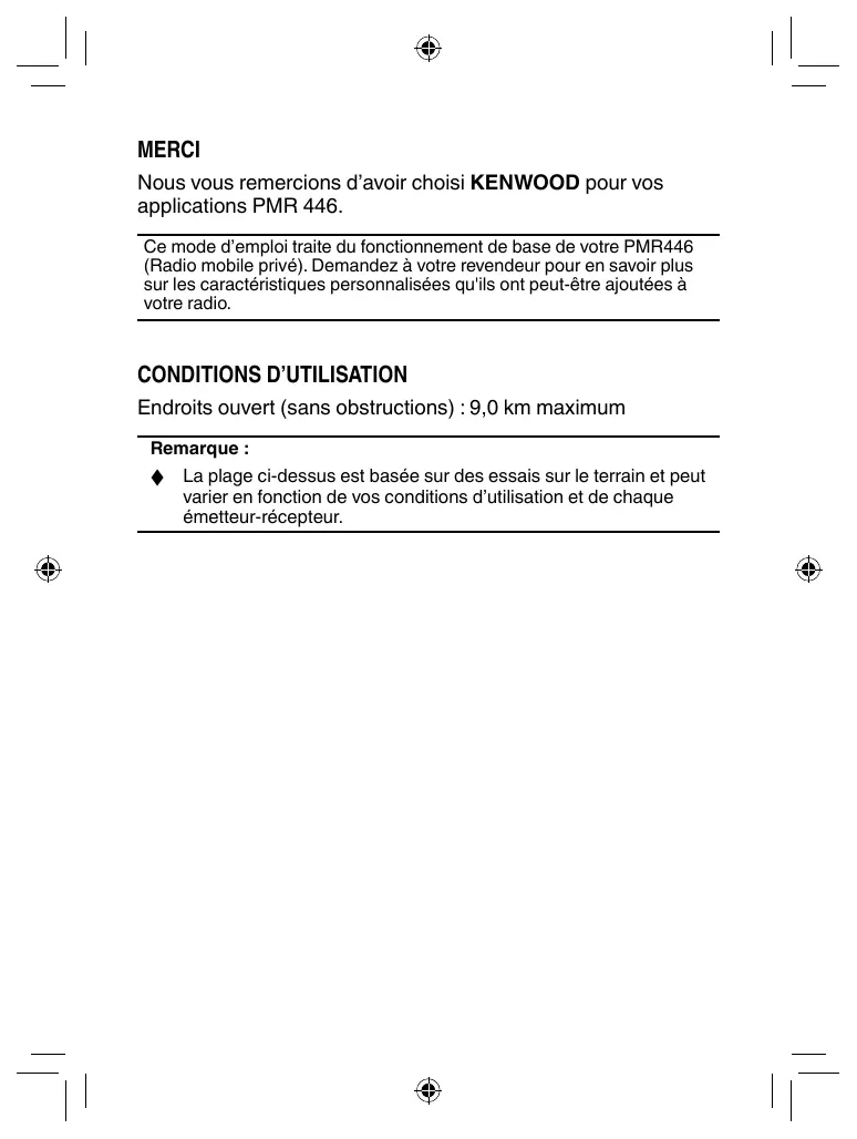 Nous vous remercions d'avoircision KENWOOD pour vos applications PMR 446.