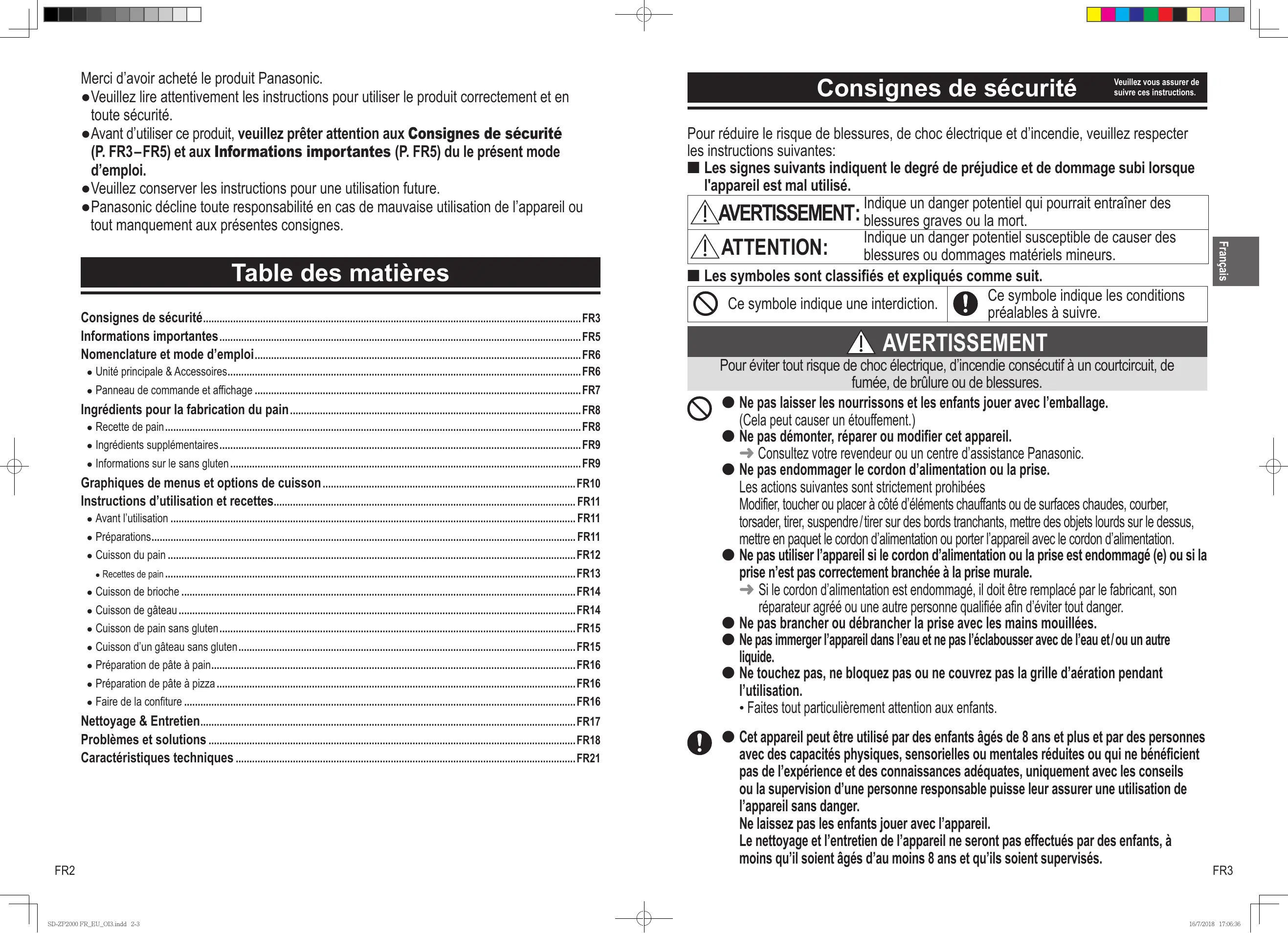 Retrouvez gratuitement la notice de l'appareil CROUSTINA SD-ZF2010KXF PANASONIC au format PDF.