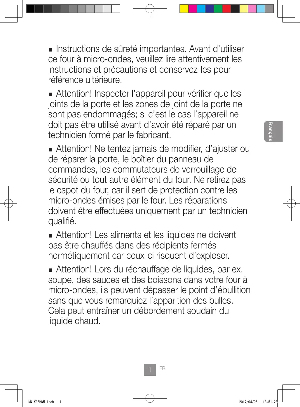 MODE D'EMPLOI NN-S29KS PANASONIC