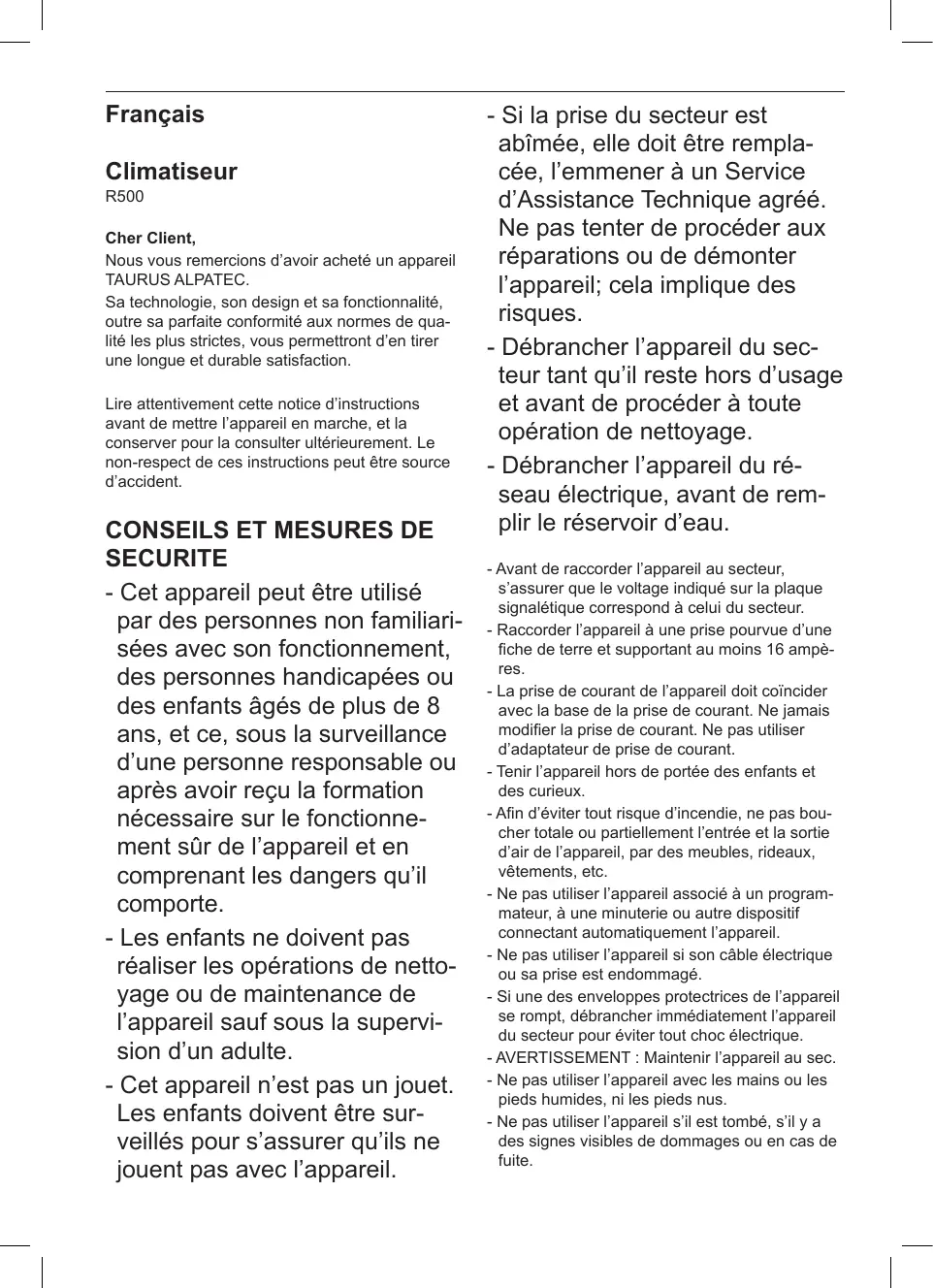 HOME AC 2600 - Climatiseur TAURUS - Notice d'utilisation et mode d'emploi gratuit