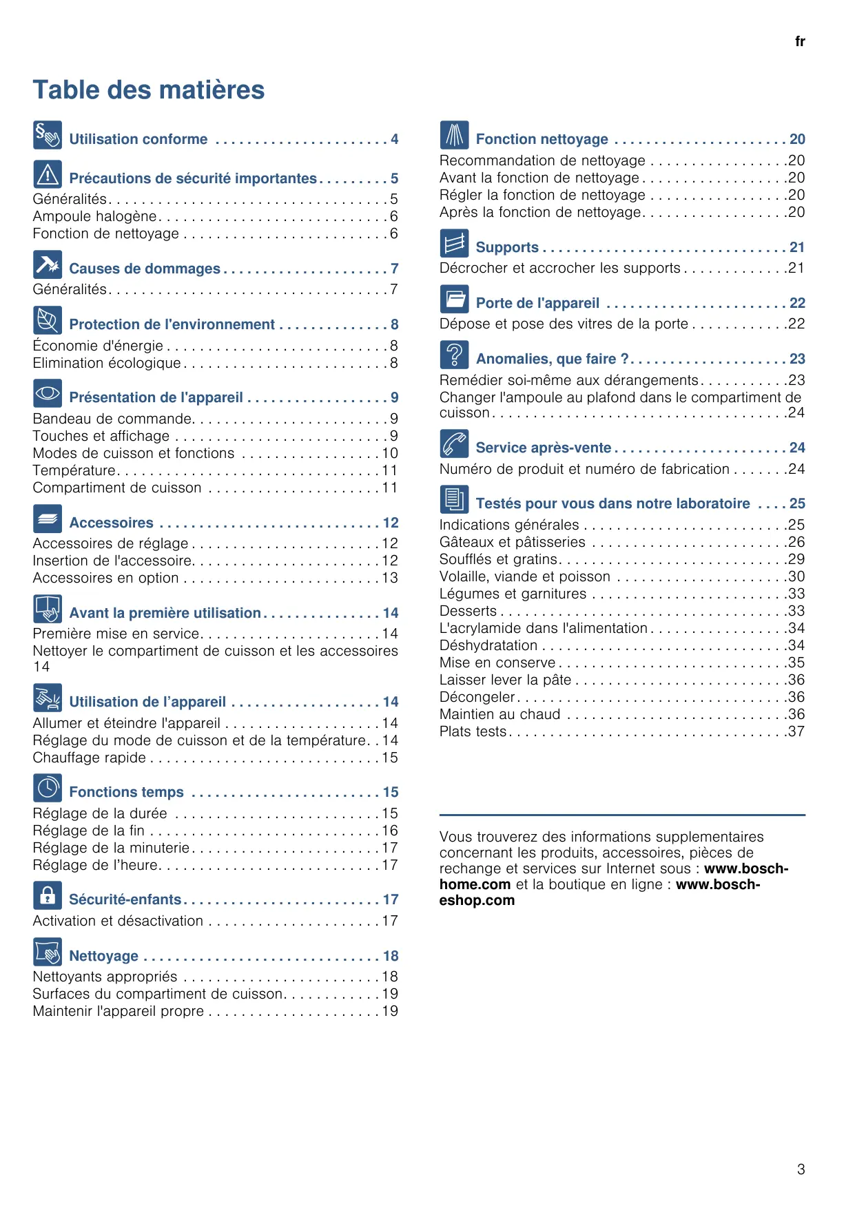 - Produktinfo Vous trouverez des informations supplementaires concernant les produits, accessoires, pièces de rechange et services sur Internet sous : www.boschhome.com et la boutique en ligne : www.boscheshop.com Activation et désactivation p. 17