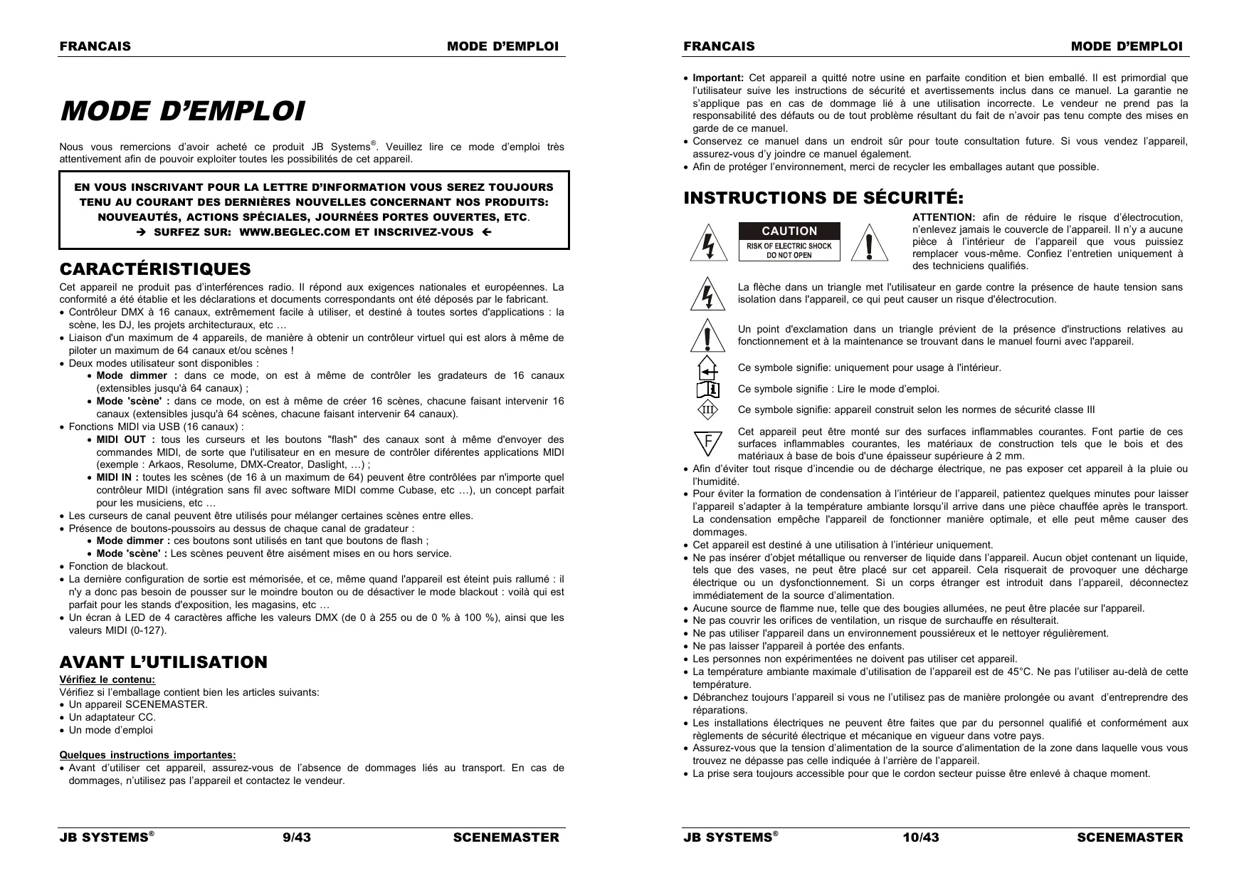 Nous vous remercions d'avoir acheté ce produit JB Systems®. Veuillez lire le mode d'emploi très attentivement afin de pouvoir exploiter toutes les possibilités de cet appareil.