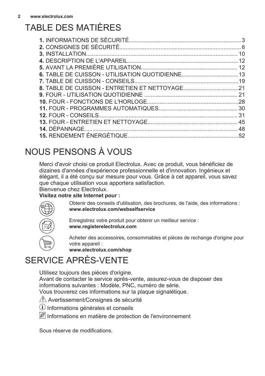 Merci d'avoir choisi ce produit Electrolux. Avec ce produit, vous bénéficiez de dizaines d'années d'expérience professionnelle et d'innovation. Ingénieux et élégant, il a été conçu sur mesure pour vous. Grâce à cet appareil, vous savez que chaque utilisation vous apportera satisfaction.