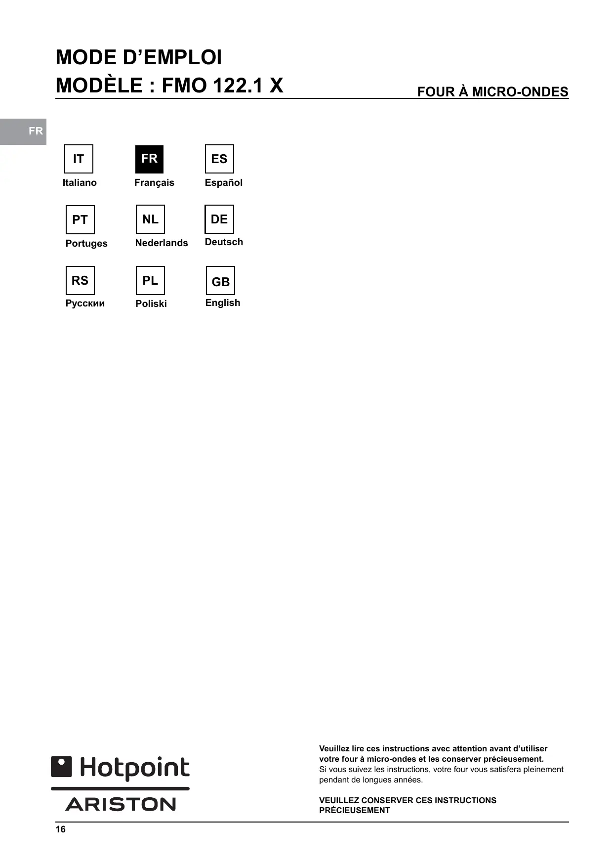 MODE D'EMPLOI MD764WHHA HOTPOINT