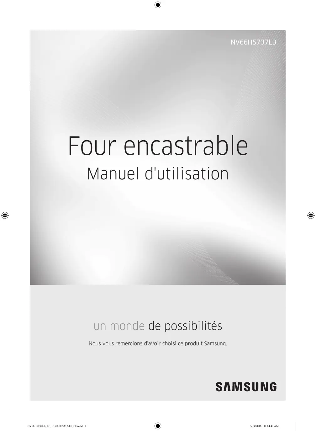 NV66H5737LB Four encastrable Manuel d'utilisation un monde de possibilités Nous vous remercions d'avoir choisi ce produit Samsung. NV66H5737LB_EF_DG68-00533B-01_FR.indd 1 8/19/2016 11:04:40 AM sommaire