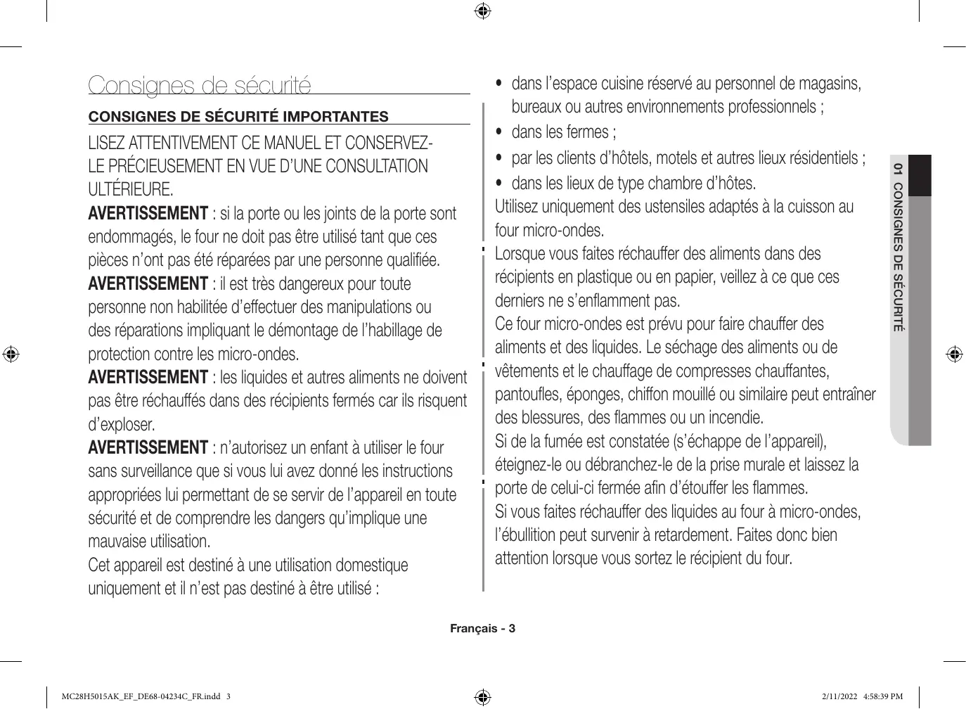 MODE D'EMPLOI MC28H5015 SAMSUNG