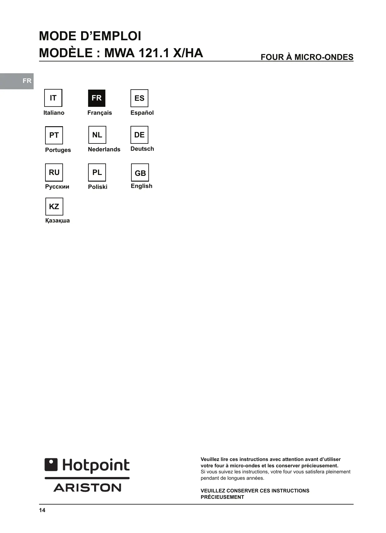 Retrouvez gratuitement la notice de l'appareil MP776IXHA HOTPOINT au format PDF.