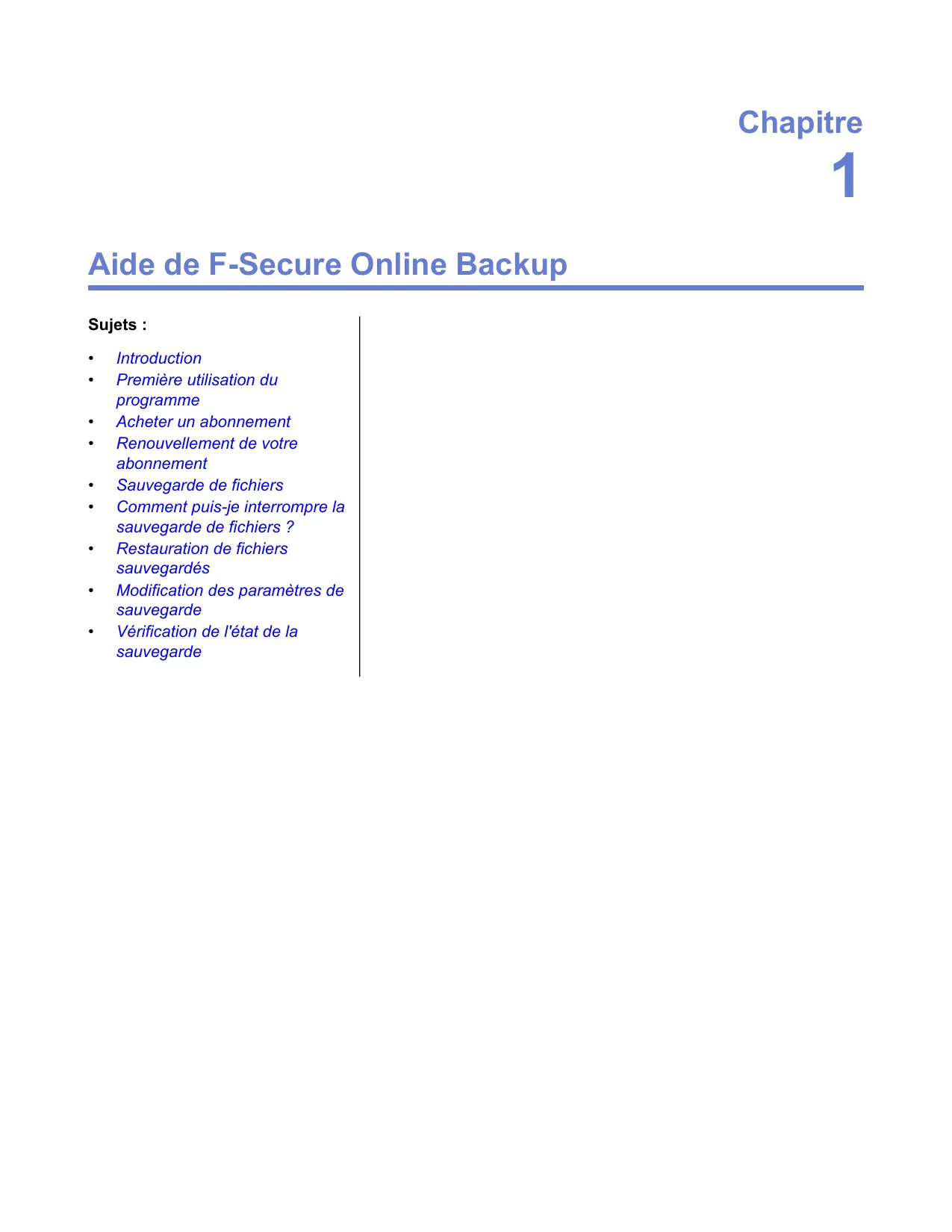 Aide de F-Secure Online Backup Sujets :