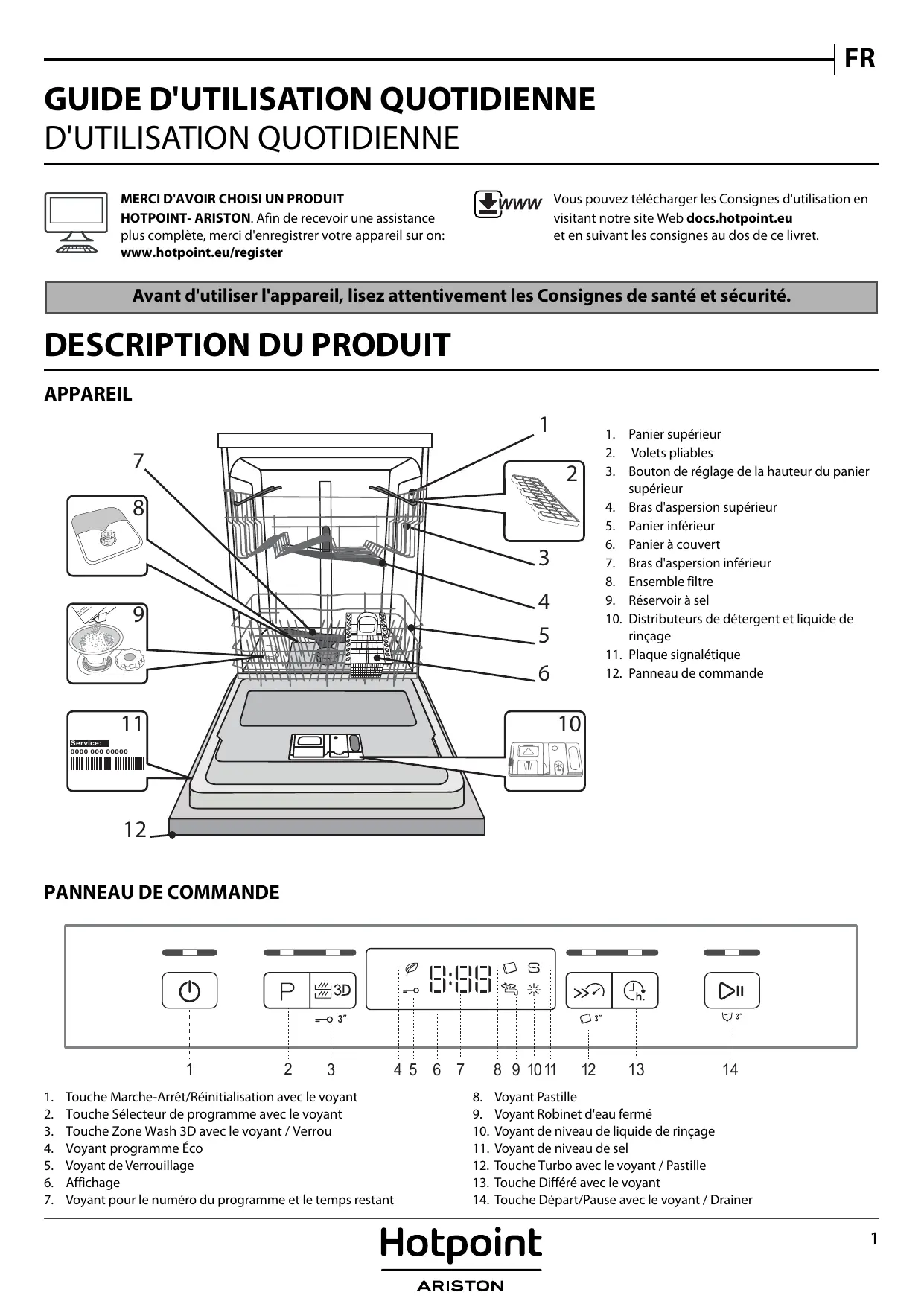 Vous pouvez télécharger les Consignes d'utilisation en visitant notre site Web docs.hotpoint.eu et en suivant les consignes au dos de ce livret.