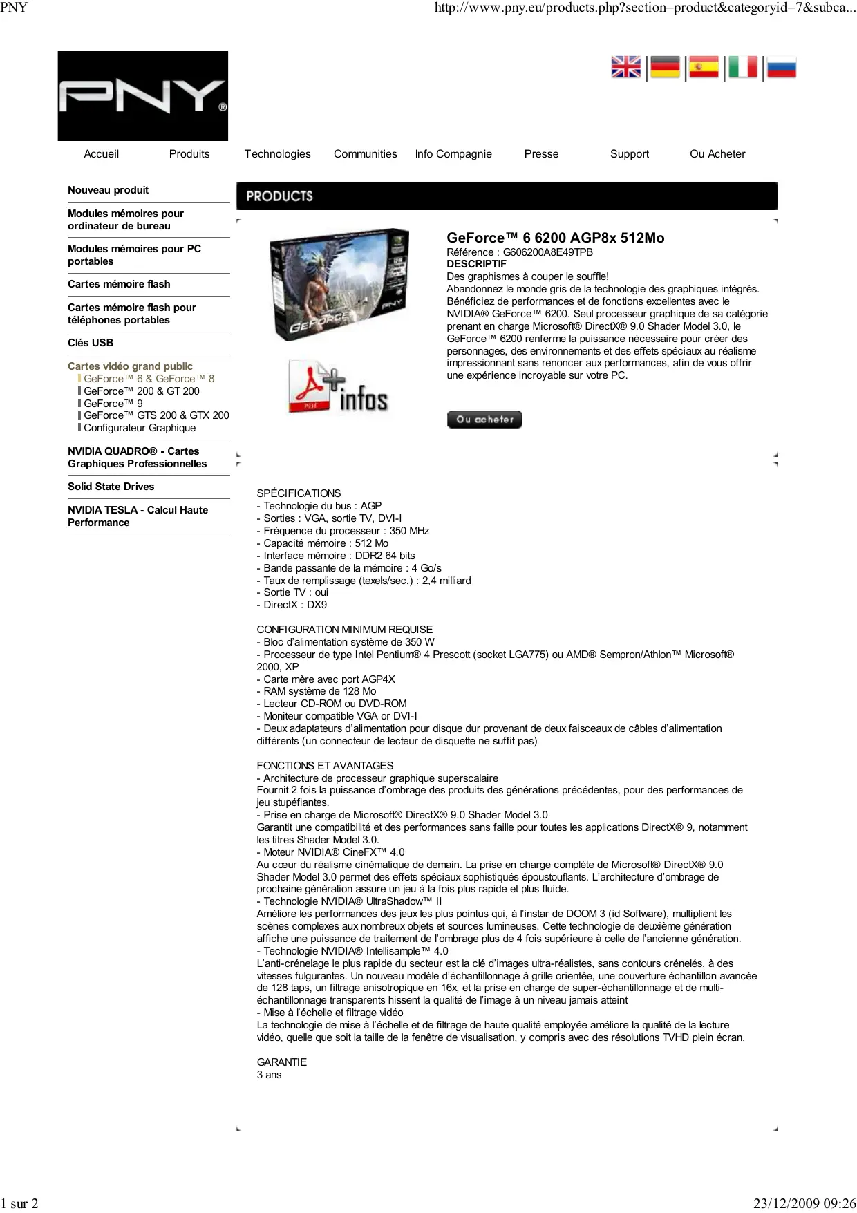 MODE D'EMPLOI GEFORCE 6200 PNY