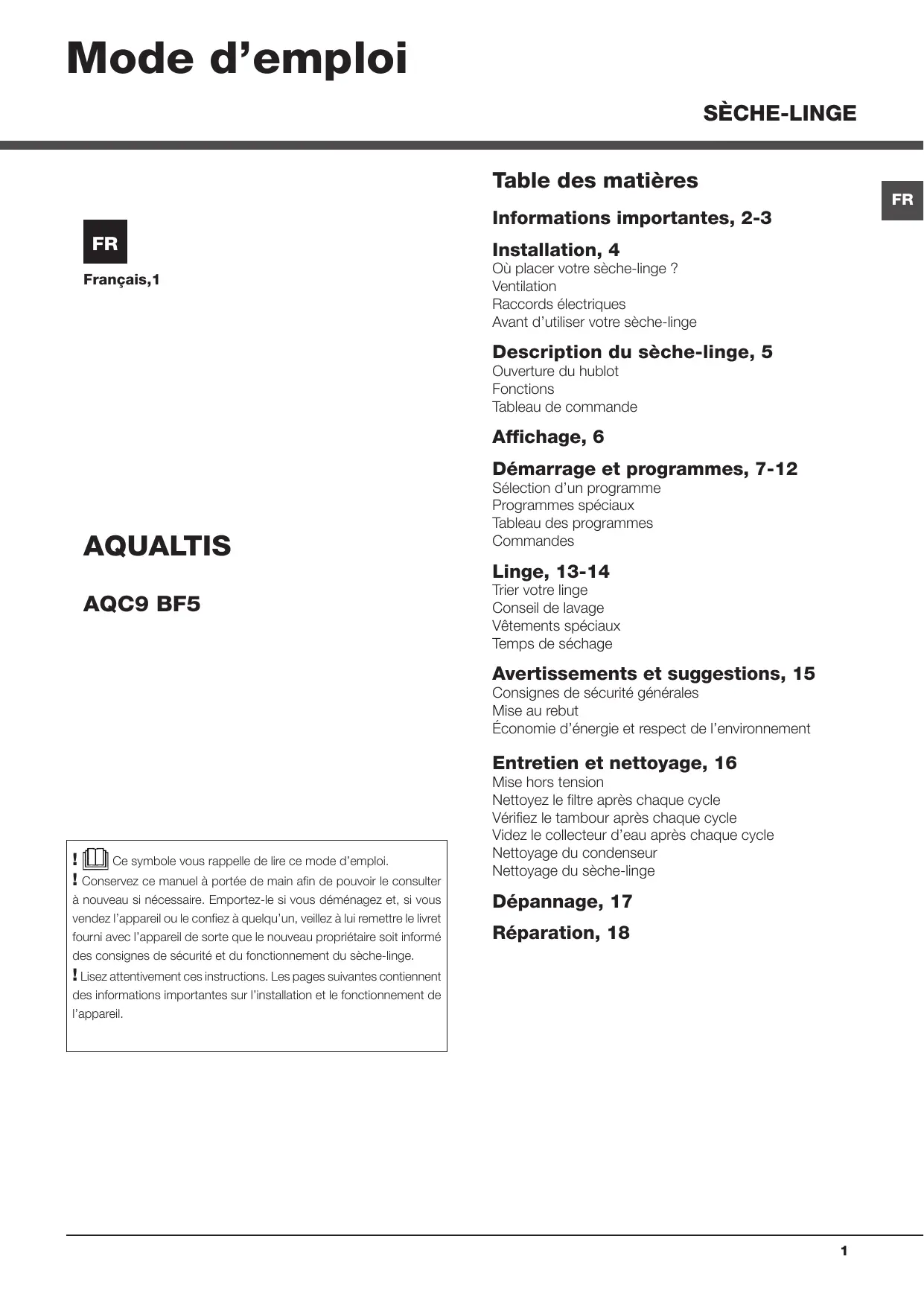 TCDG51XB - Sèche-linge HOTPOINT-ARISTON - Notice d'utilisation et mode d'emploi gratuit