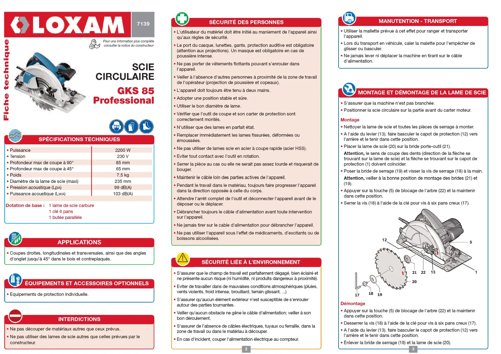 MODE D'EMPLOI SCIE CIRCULAIRE GKS 85 PRO LOXAM