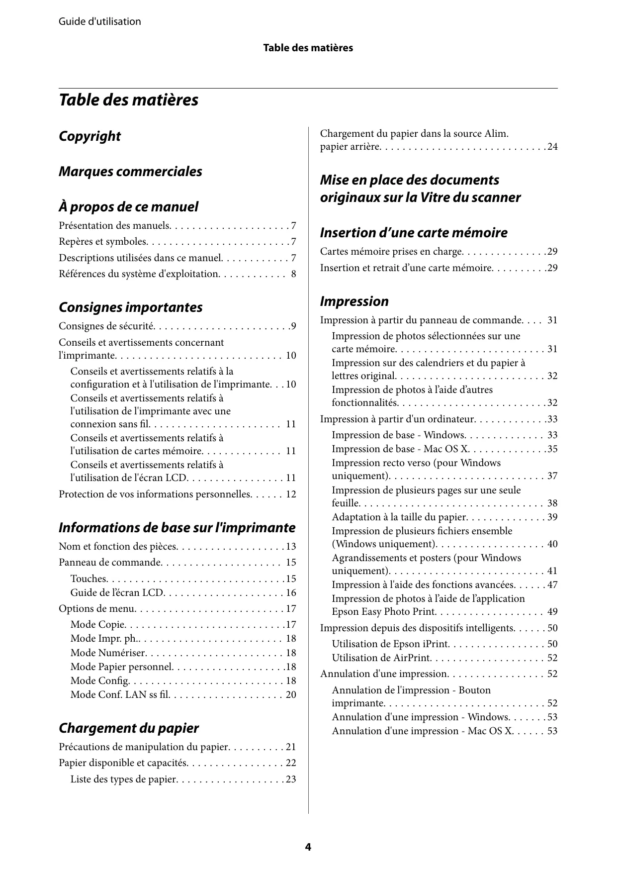 - Pour les fonctions avancées (numérisation, réglages), utilisez le logiciel EPSON installé sur votre ordinateur ou application mobile EPSON.