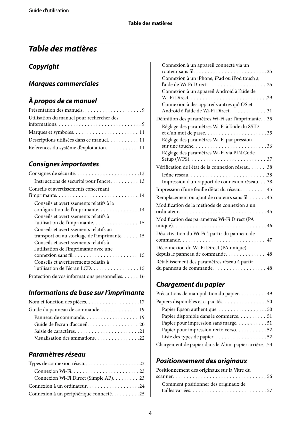 - Connexion Wi-Fi Direct (Simple AP) p. 23