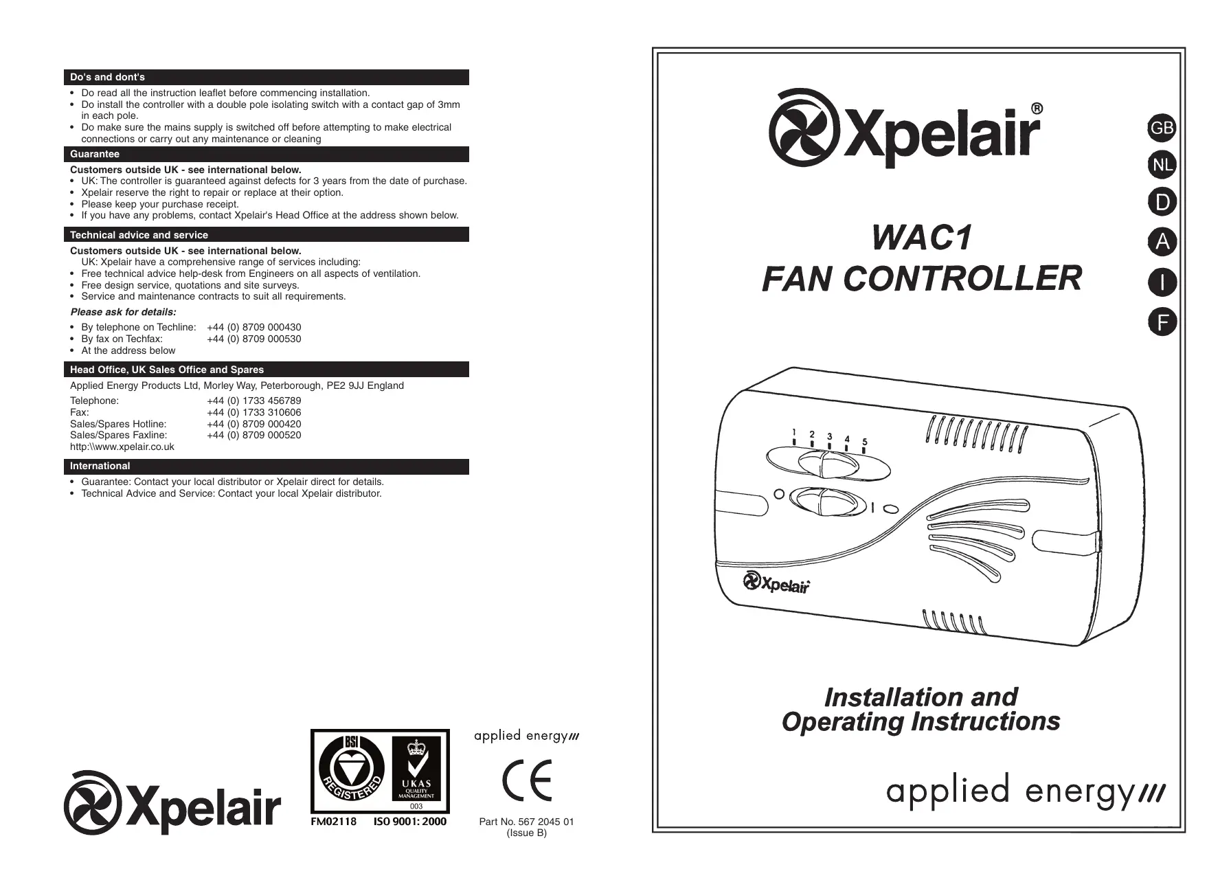 Si vous avez des questions avant, pendant et après l'installation du contrôleur, n’hésitez pas à contacter le numéro britannique d’urgence de Xpelair (numéro sur la page). Pour les clients hors du Royaume-Uni, contactez votre distributeur Xpelair local.