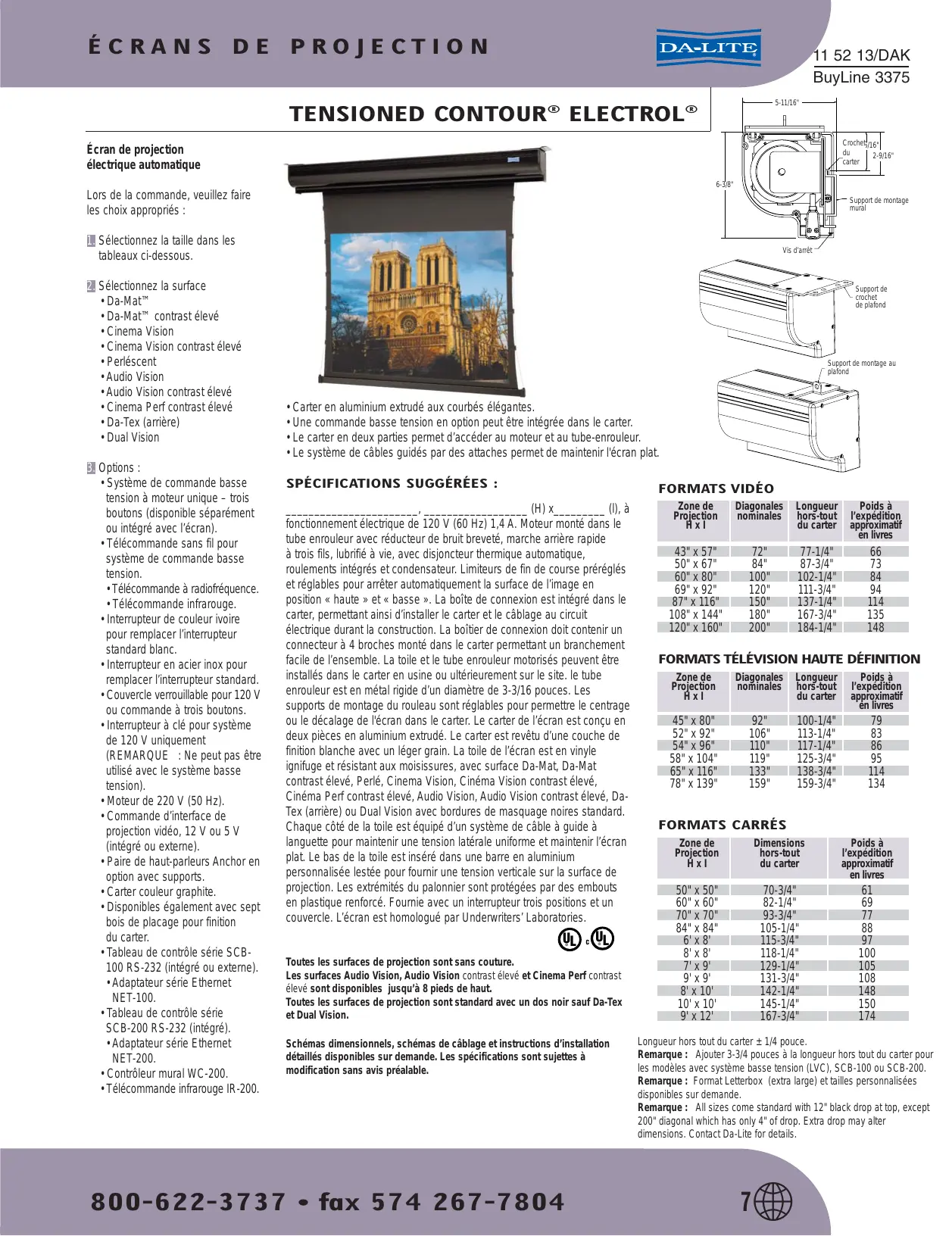 TENSIONED CONTOUR ELECTROL - Écran de projection DA-LITE - Notice d'utilisation et mode d'emploi gratuit