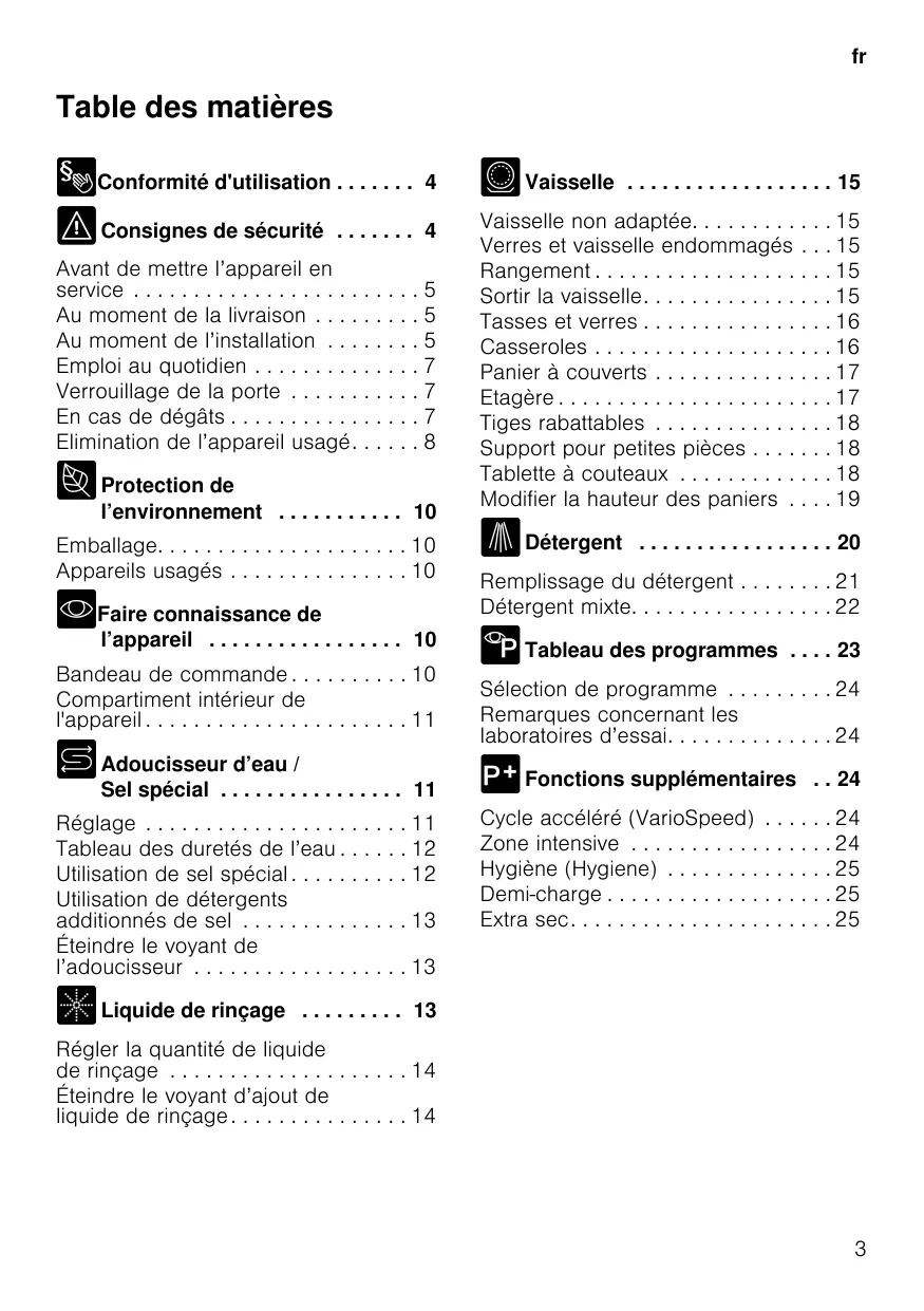 | Entretien et nettoyage | Filtres à nettoyer régulièrement, bras d'aspersion à vérifier |