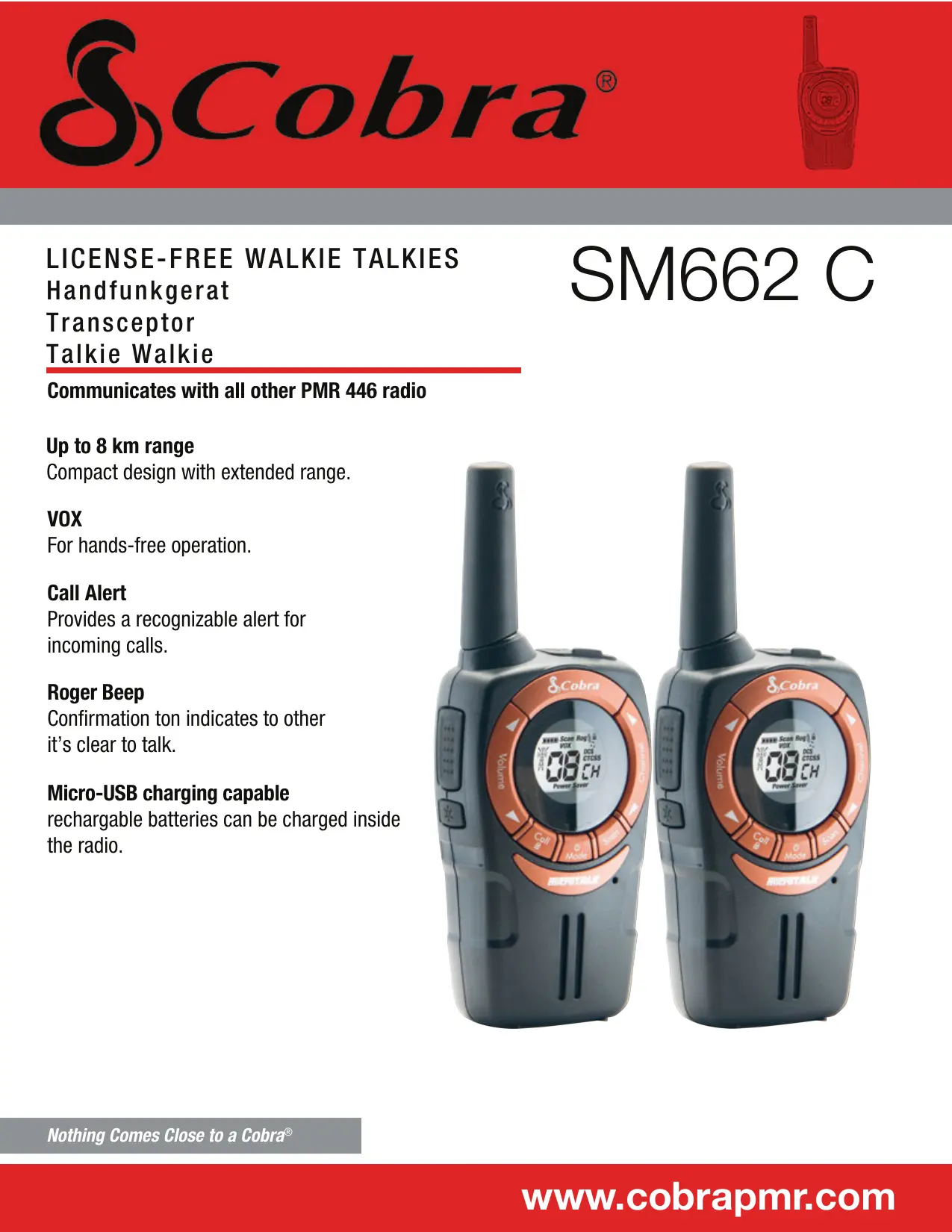 Téléchargez la notice de votre Talkie-walkie au format PDF gratuitement ! Retrouvez votre notice AM845 - COBRA et reprennez votre appareil électronique en main. Sur cette page sont publiés tous les documents nécessaires à l'utilisation de votre appareil AM845 de la marque COBRA.