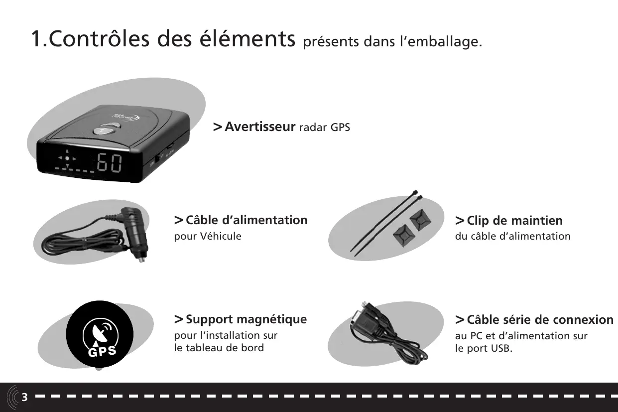 1.Contrôles des éléments présents dans l’emballage. > Avertisseur radar GPS