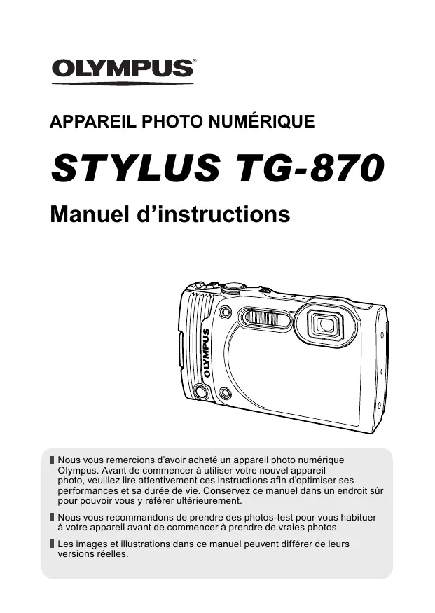 ■ Nous vous remercions d'avoir acheté un apparieil photo numérique Olympus. Avant de commencer à utiliser votre nouvel apparieil photo, veuillez dire attentivement ces instructions afin d'optimiser ses performances et sa durée de vie. Conservez ce manuel dans un endroit surl pour pouvoir vous y reférer ultérieurement.