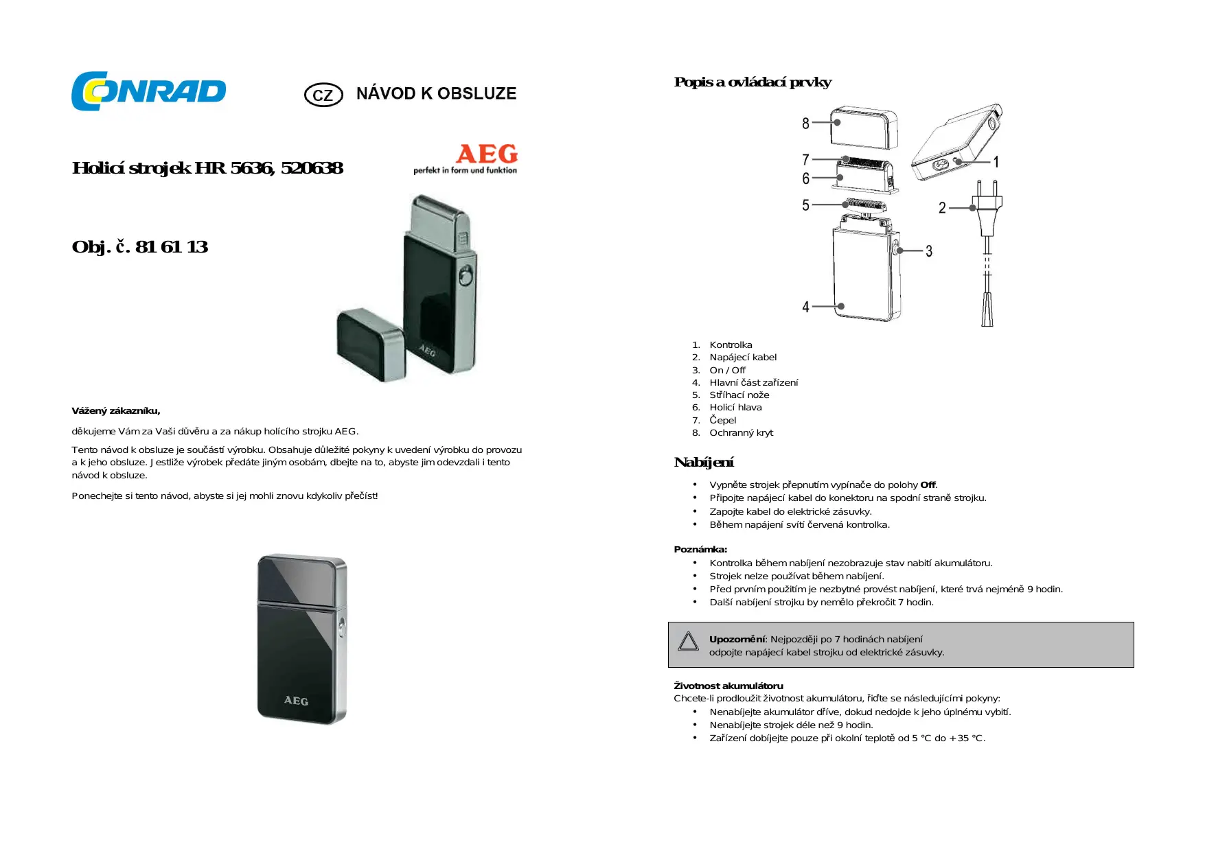 HR 5655 - Rasoir électrique AEG-ELECTROLUX - Notice d'utilisation et mode d'emploi gratuit